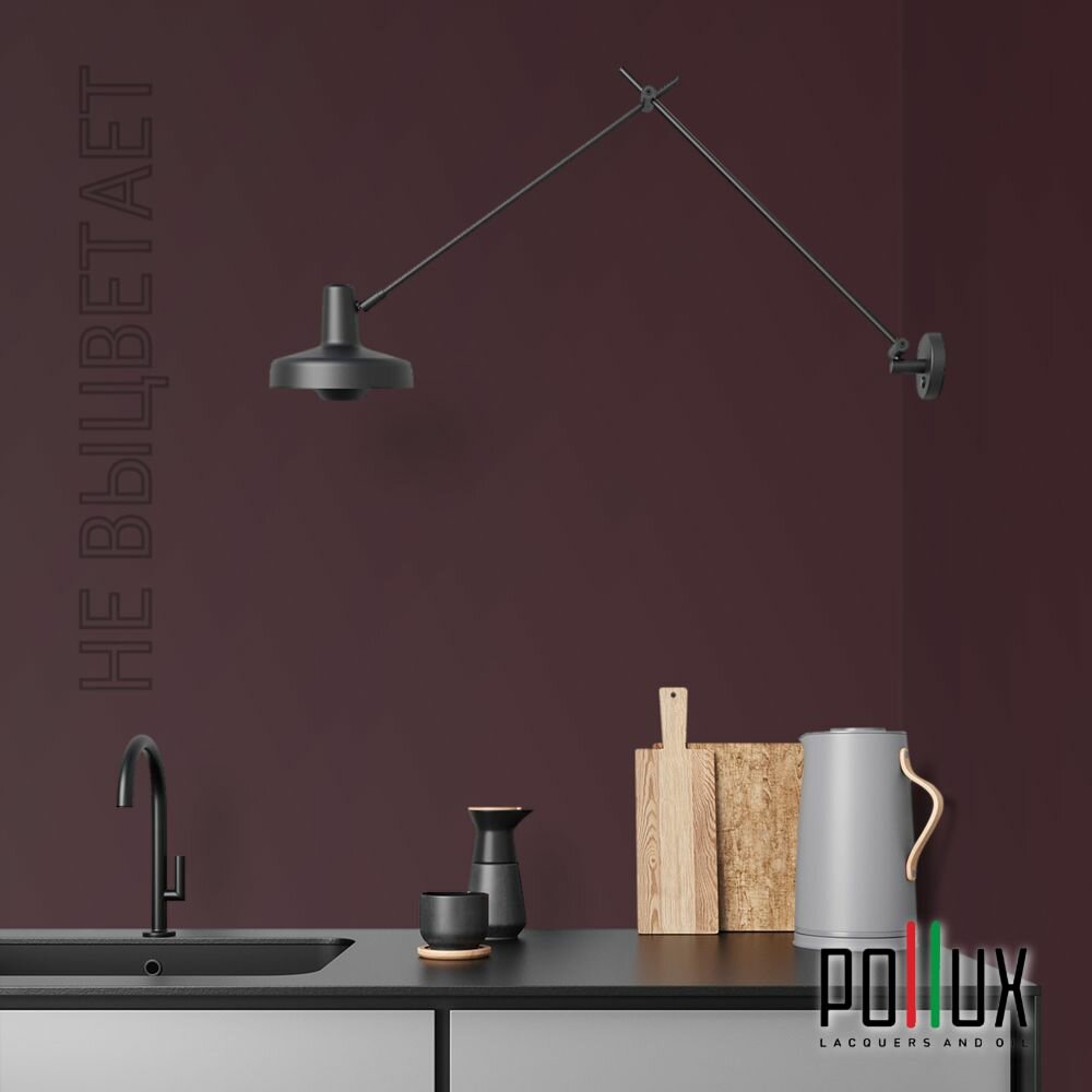 Краска моющаяся интерьерная для стен и потолков, Pollux INTERIOR без запаха, быстросохнущая, акриловая, матовое покрытие, цвет NCS S 4010-R10B, 1л.