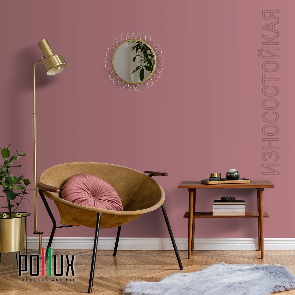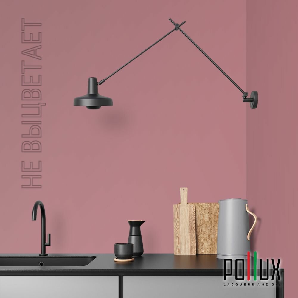 Краска моющаяся интерьерная для стен и потолков, Pollux INTERIOR без запаха, быстросохнущая, акриловая, матовое покрытие, цвет NCS S 0907-R10B, 1л.