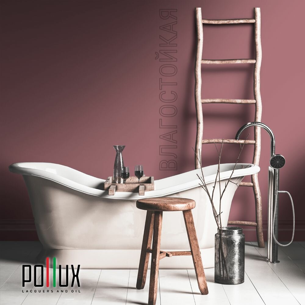 Краска моющаяся интерьерная для стен и потолков, Pollux INTERIOR без запаха, быстросохнущая, акриловая, матовое покрытие, цвет NCS S 3030-R10B, 1л.