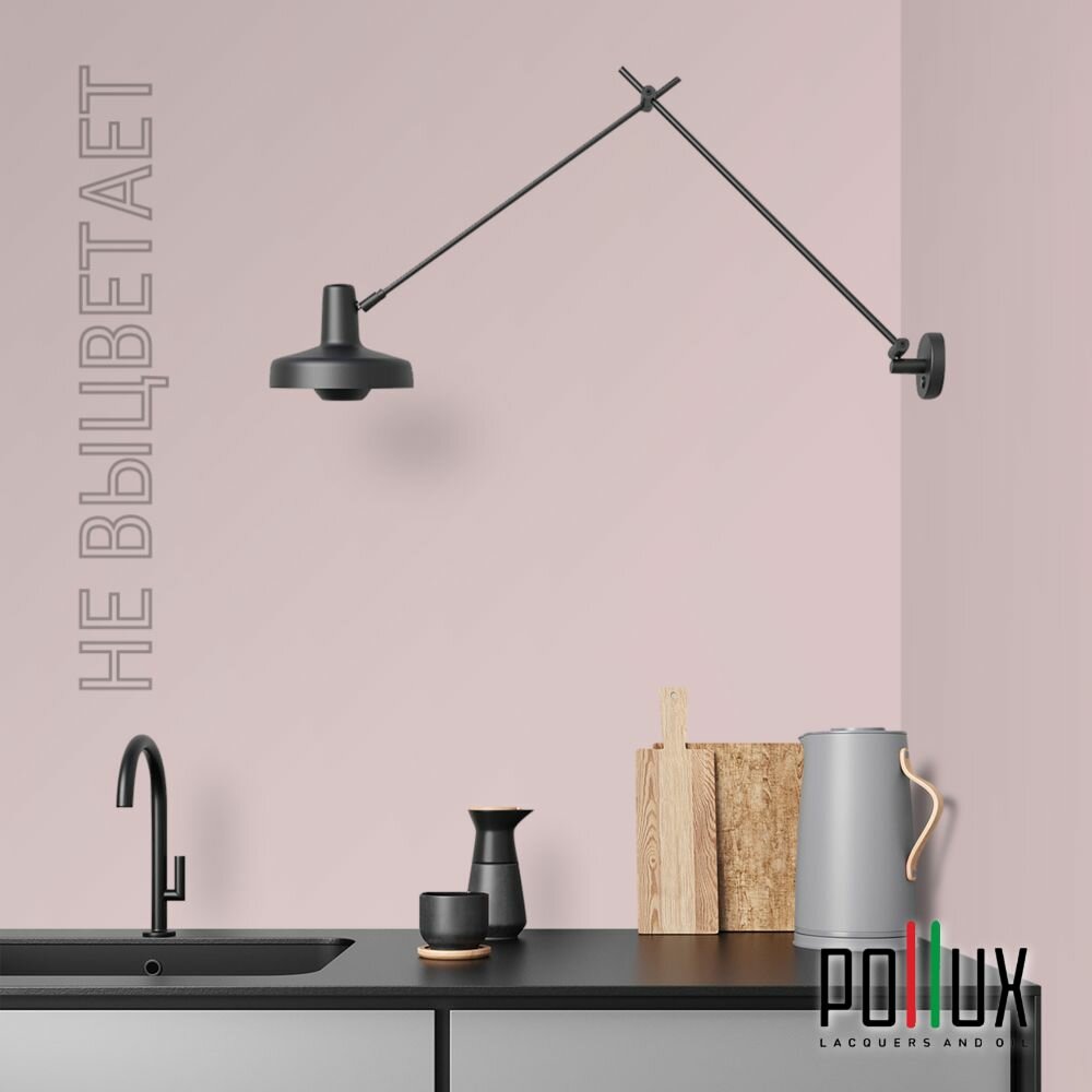 Краска моющаяся интерьерная для стен и потолков, Pollux INTERIOR без запаха, быстросохнущая, акриловая, матовое покрытие, цвет NCS S 0907-R10B, 1л.