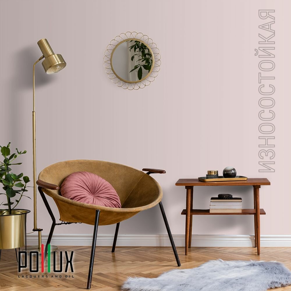 Краска моющаяся интерьерная для стен и потолков, Pollux INTERIOR без запаха, быстросохнущая, акриловая, матовое покрытие, цвет NCS S 0907-R10B, 1л.