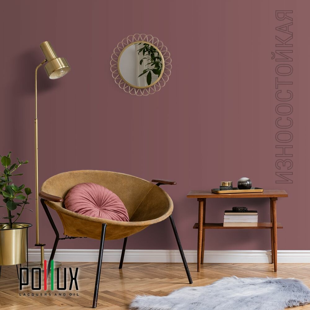 Краска моющаяся интерьерная для стен и потолков, Pollux INTERIOR без запаха, быстросохнущая, акриловая, матовое покрытие, цвет NCS S 2005-R10B, 1л.