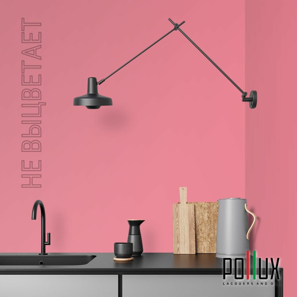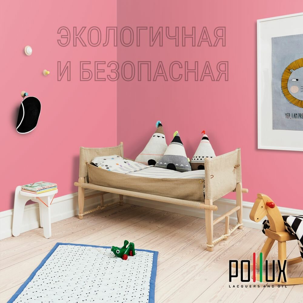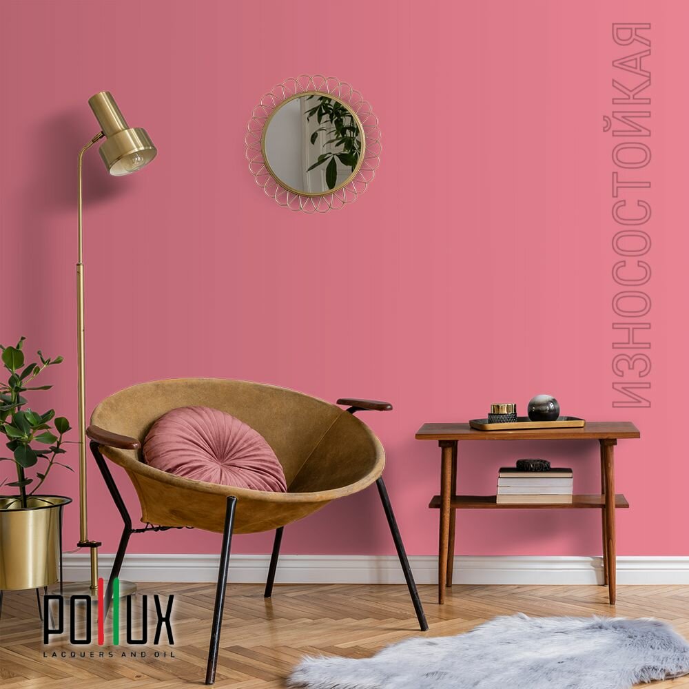 Краска моющаяся интерьерная для стен и потолков, Pollux INTERIOR без запаха, быстросохнущая, акриловая, матовое покрытие, цвет NCS S 0907-R10B, 1л.