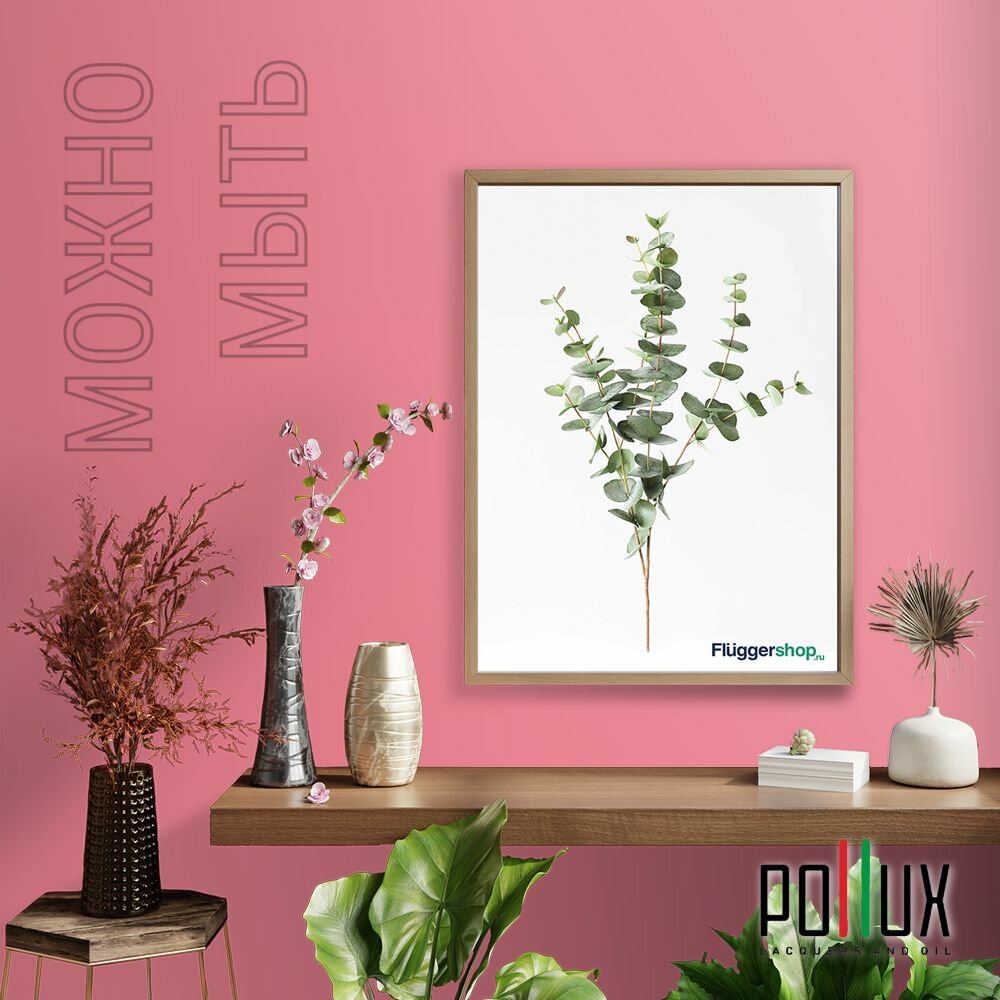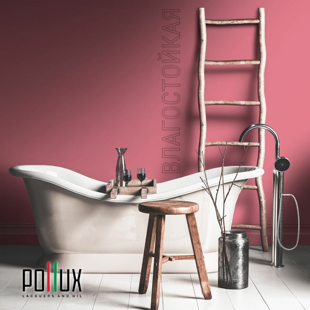 Краска моющаяся интерьерная для стен и потолков, Pollux INTERIOR без запаха, быстросохнущая, акриловая, матовое покрытие, цвет NCS S 2005-R10B, 1л.