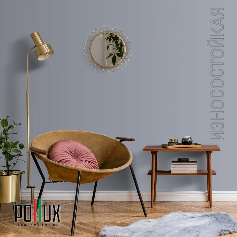 Краска моющаяся интерьерная для стен и потолков, Pollux INTERIOR без запаха, быстросохнущая, акриловая, матовое покрытие, цвет NCS S 3030-R70B, 1л.