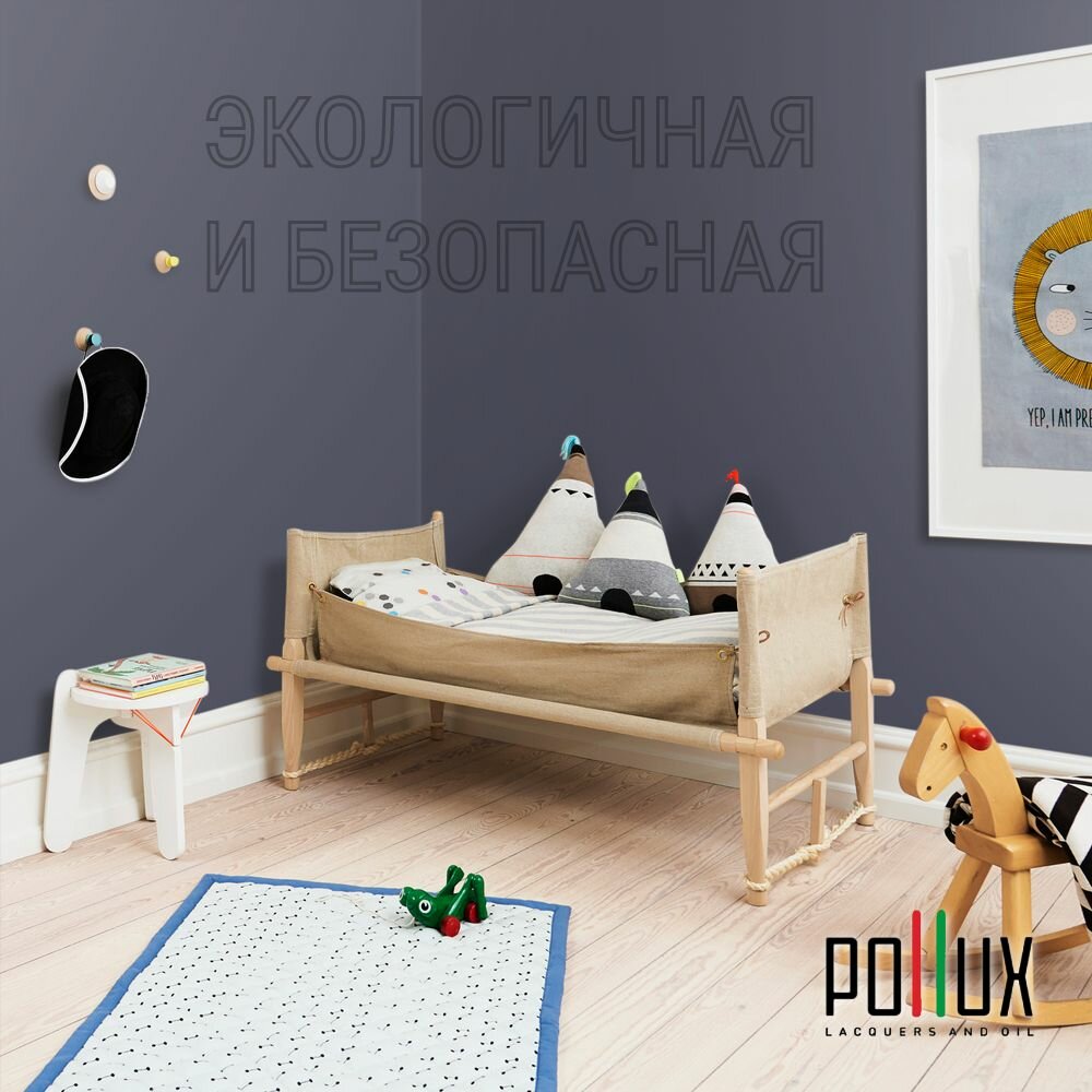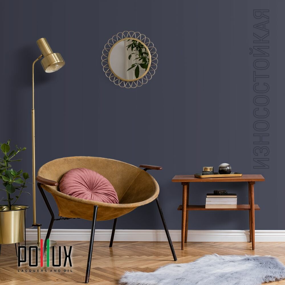 Краска моющаяся интерьерная для стен и потолков, Pollux INTERIOR без запаха, быстросохнущая, акриловая, матовое покрытие, цвет NCS S 8010-R70B, 1л.