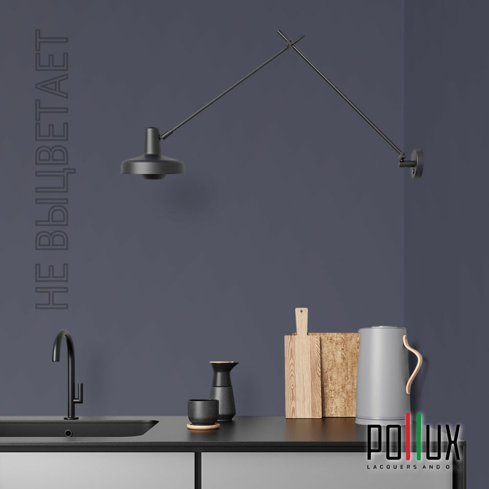 Краска моющаяся интерьерная для стен и потолков, Pollux INTERIOR без запаха, быстросохнущая, акриловая, матовое покрытие, цвет NCS S 7020-R70B, 1л.