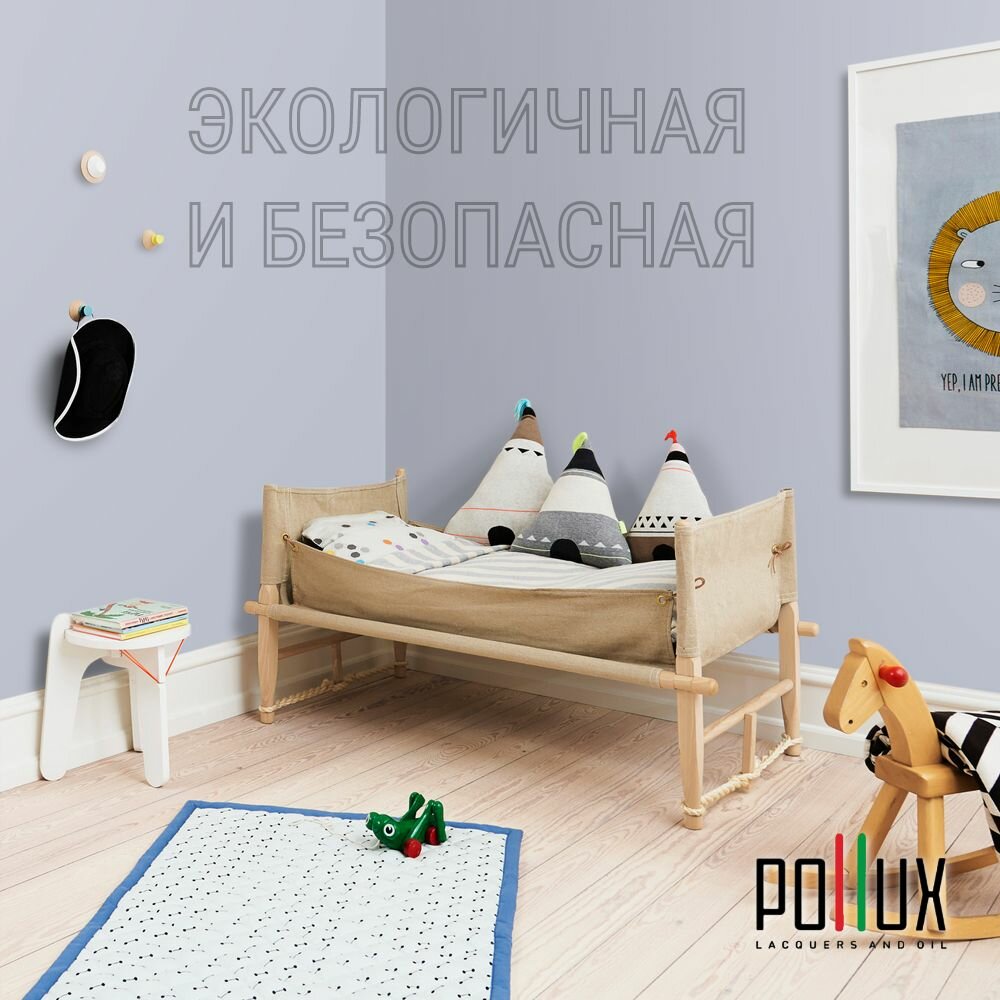 Краска моющаяся интерьерная для стен и потолков, Pollux INTERIOR без запаха, быстросохнущая, акриловая, матовое покрытие, цвет NCS S 2030-R70B, 1л.