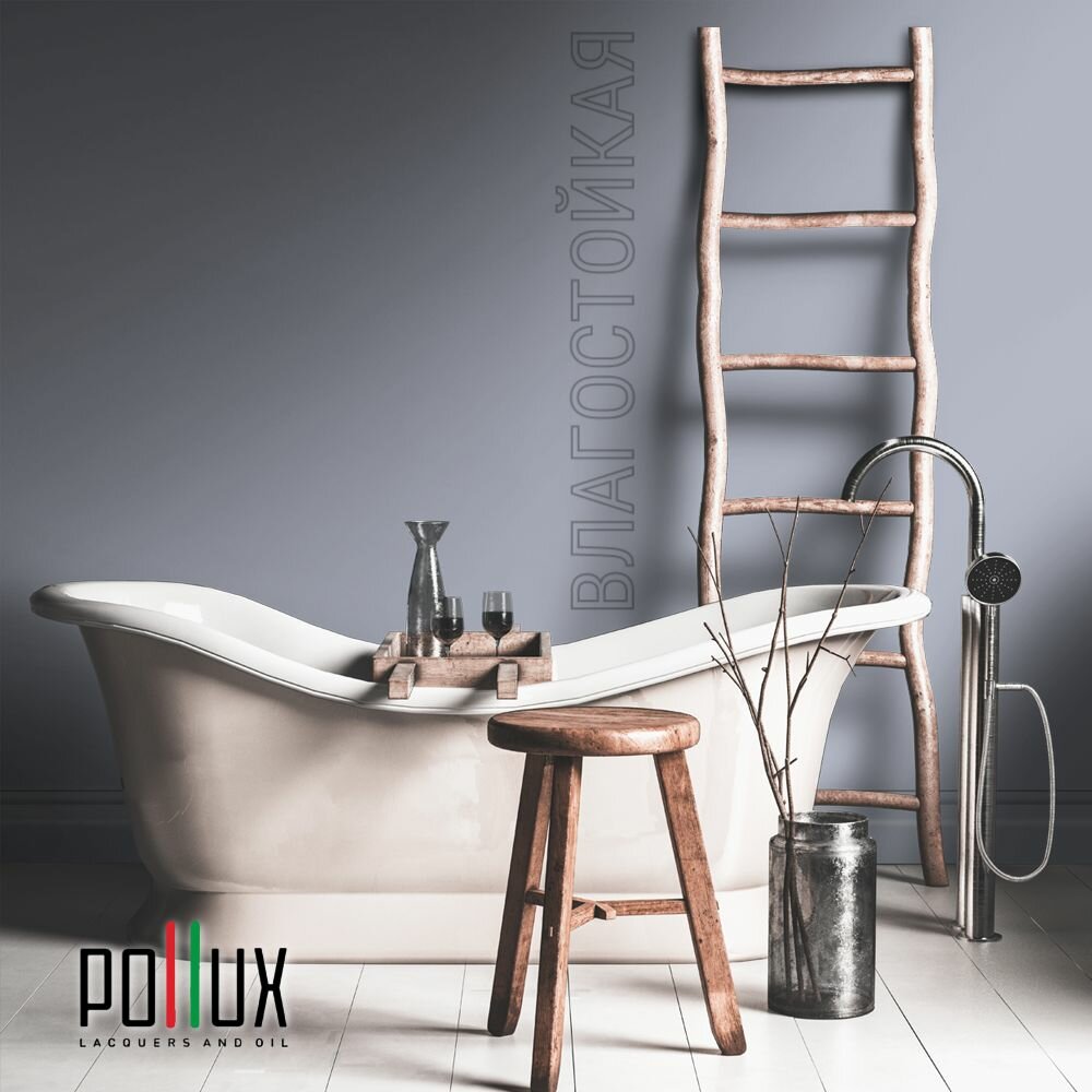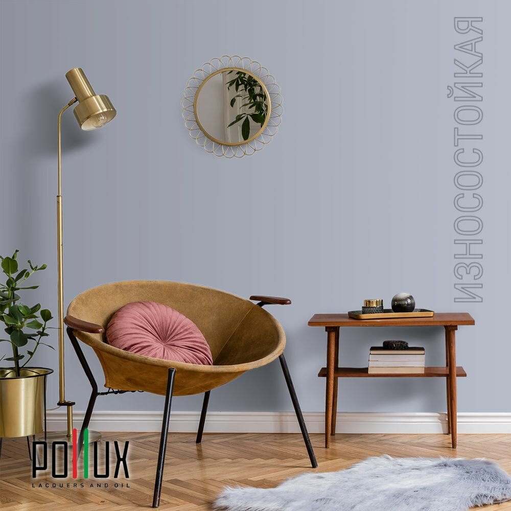 Краска моющаяся интерьерная для стен и потолков, Pollux INTERIOR без запаха, быстросохнущая, акриловая, матовое покрытие, цвет NCS S 7020-R70B, 1л.