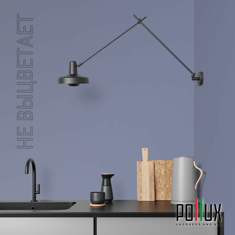 Краска моющаяся интерьерная для стен и потолков, Pollux INTERIOR без запаха, быстросохнущая, акриловая, матовое покрытие, цвет NCS S 8010-R70B, 1л.