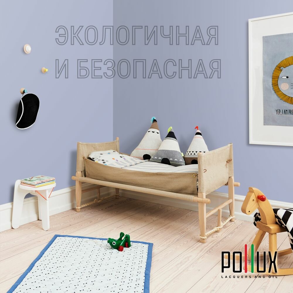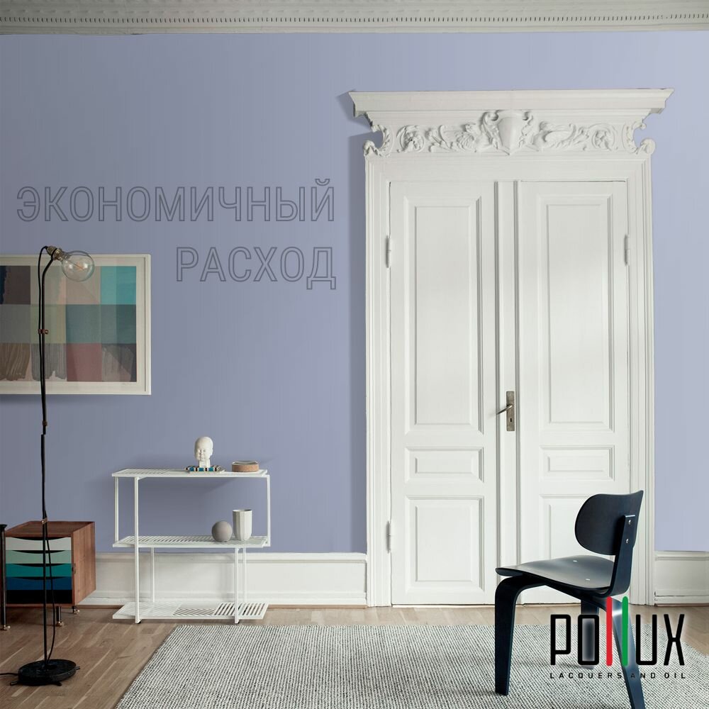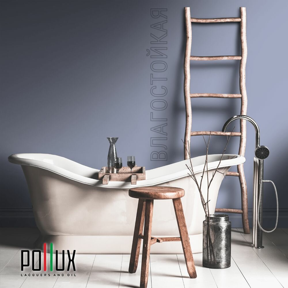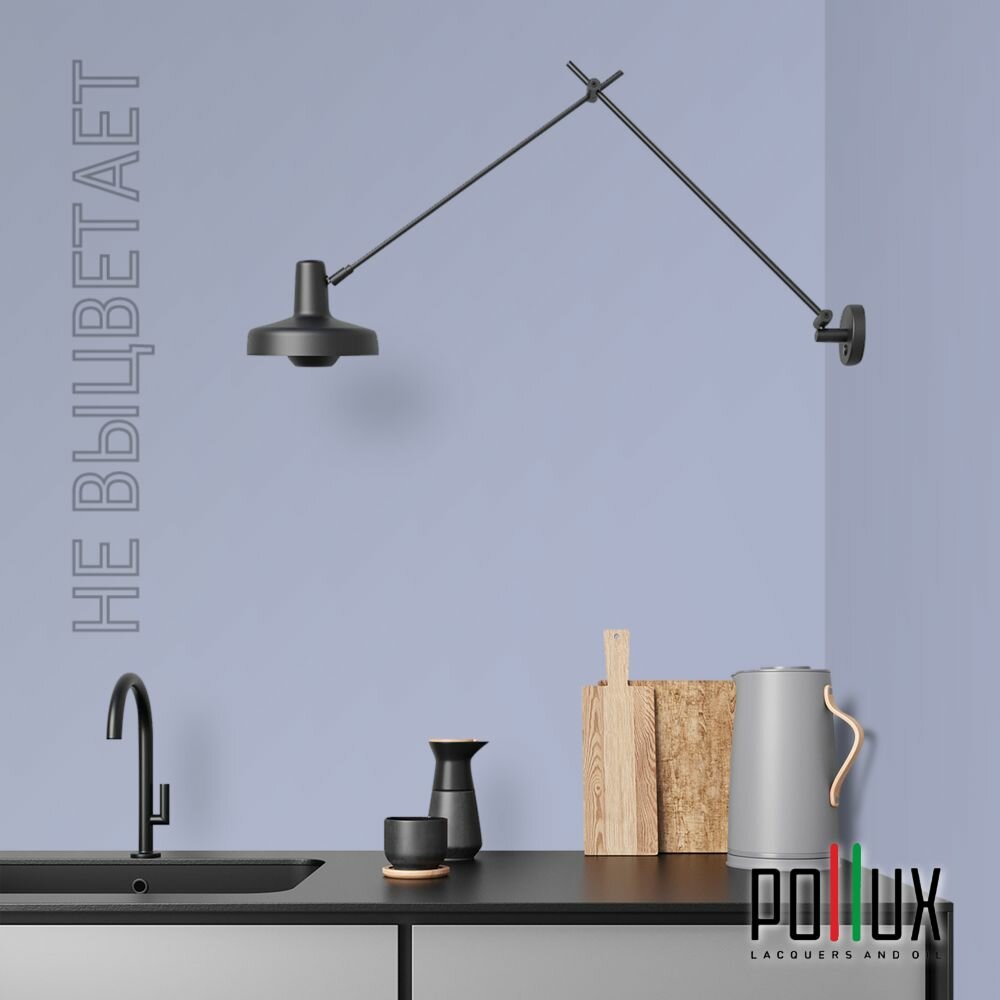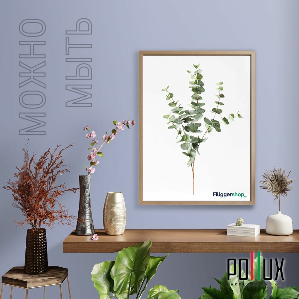 Краска моющаяся интерьерная для стен и потолков, Pollux INTERIOR без запаха, быстросохнущая, акриловая, матовое покрытие, цвет NCS S 8010-R70B, 1л.