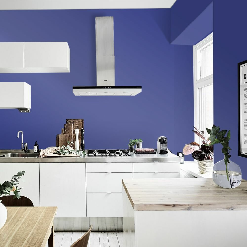 Краска моющаяся интерьерная для стен и потолков, Pollux INTERIOR без запаха, быстросохнущая, акриловая, матовое покрытие, цвет NCS S 4550-R70B, 1л.