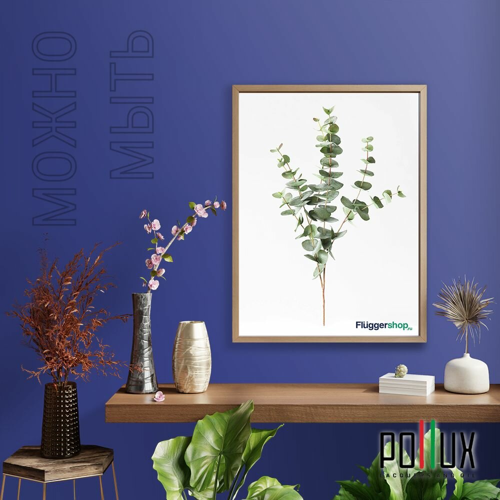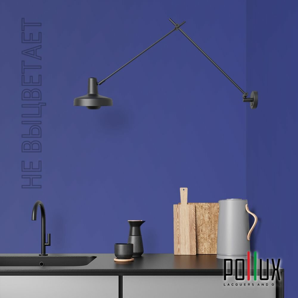 Краска моющаяся интерьерная для стен и потолков, Pollux INTERIOR без запаха, быстросохнущая, акриловая, матовое покрытие, цвет NCS S 8010-R70B, 1л.