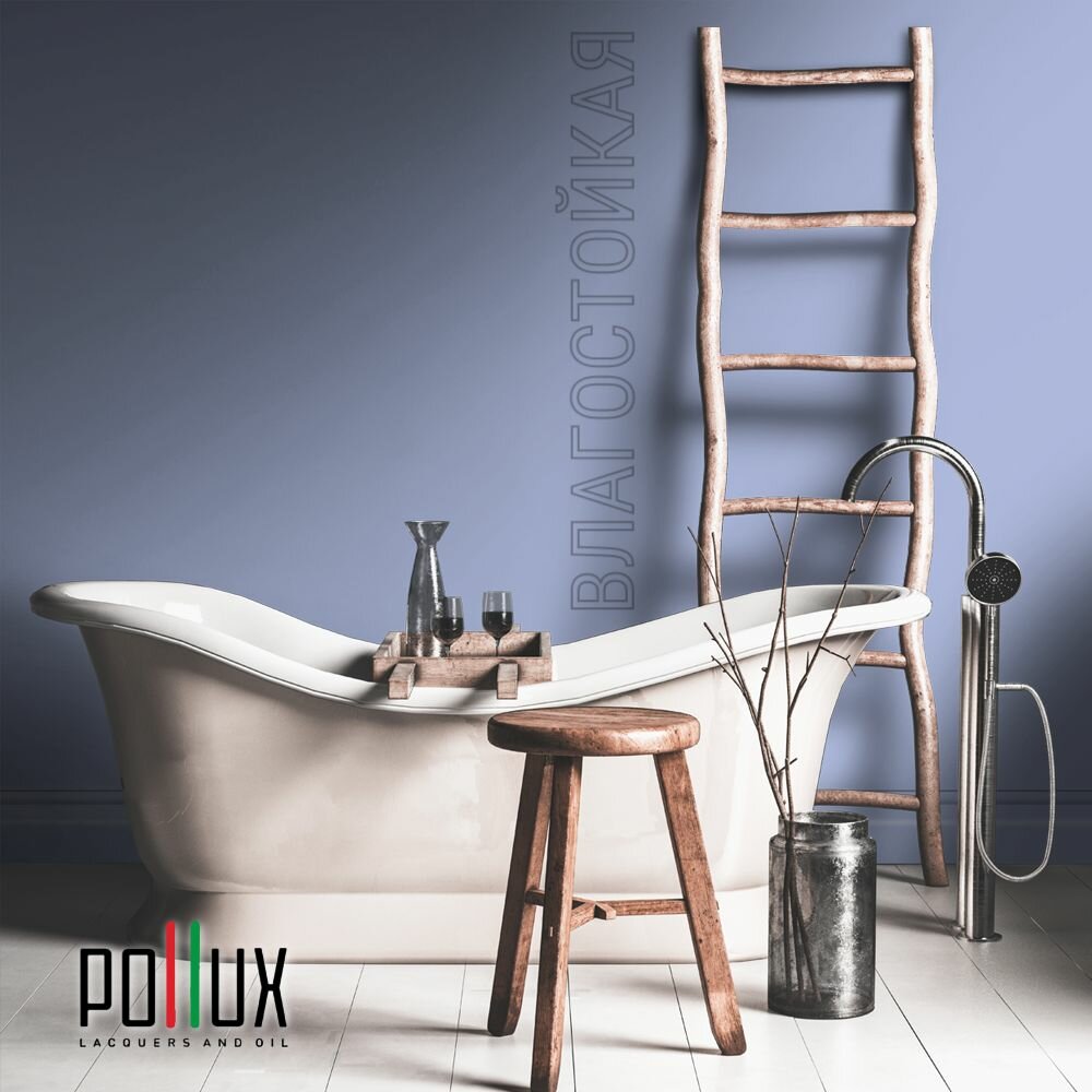 Краска моющаяся интерьерная для стен и потолков, Pollux INTERIOR без запаха, быстросохнущая, акриловая, матовое покрытие, цвет NCS S 8010-R70B, 1л.