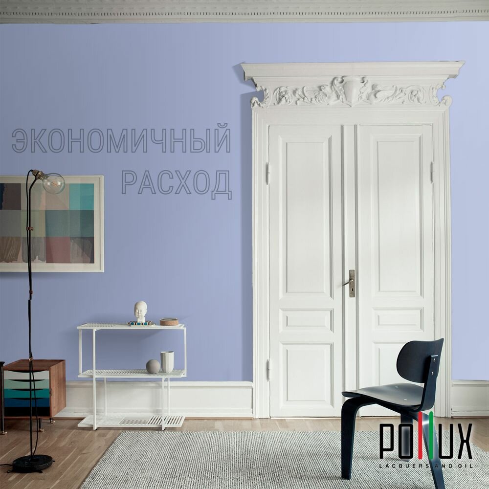 Краска моющаяся интерьерная для стен и потолков, Pollux INTERIOR без запаха, быстросохнущая, акриловая, матовое покрытие, цвет NCS S 2030-R70B, 1л.