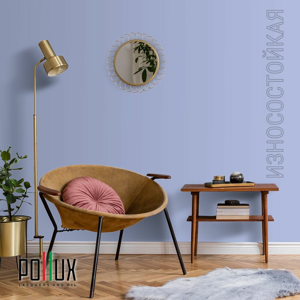 Краска моющаяся интерьерная для стен и потолков, Pollux INTERIOR без запаха, быстросохнущая, акриловая, матовое покрытие, цвет NCS S 3050-R70B, 1л.