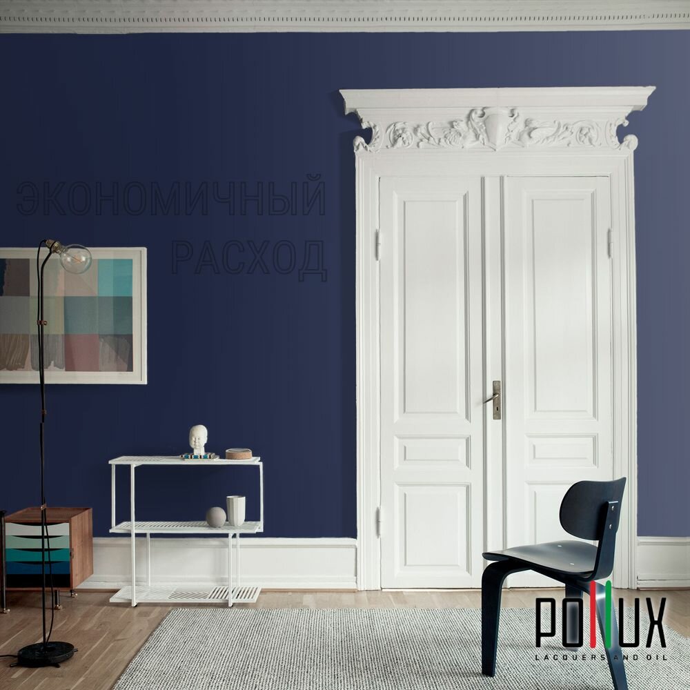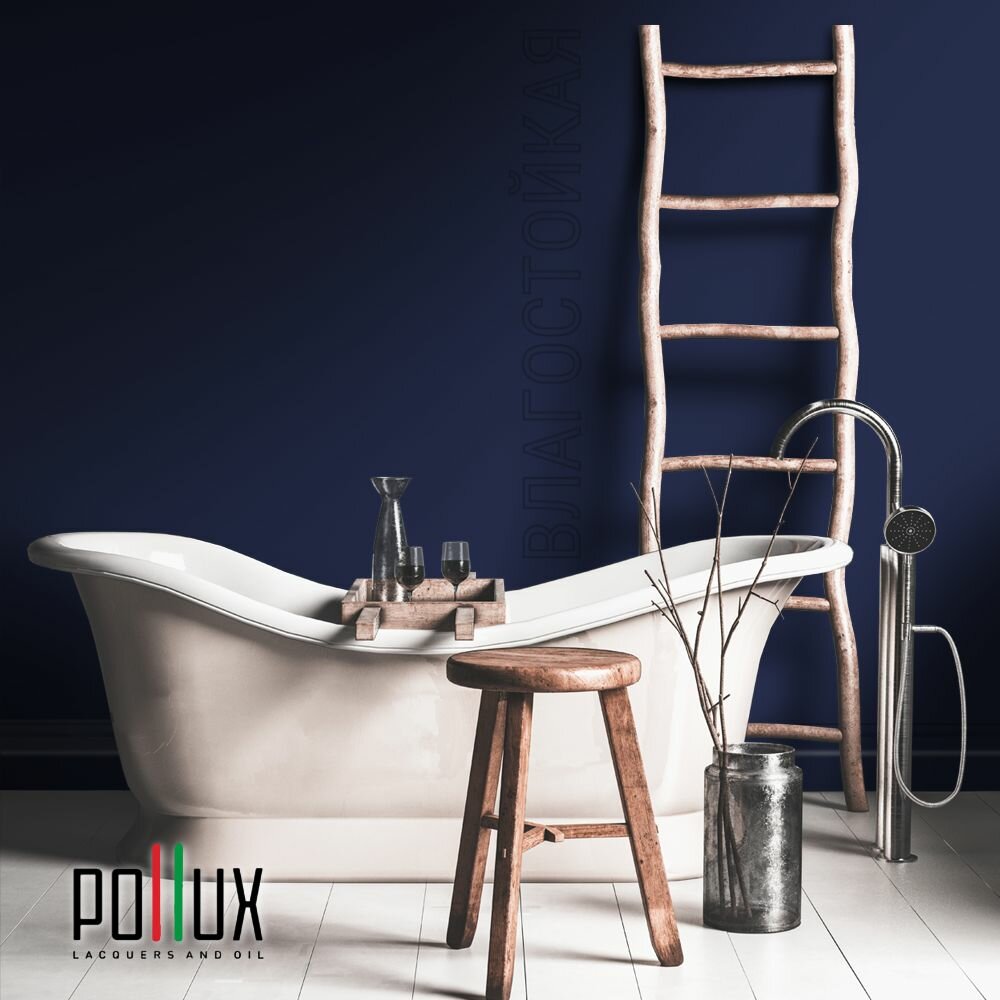 Краска моющаяся интерьерная для стен и потолков, Pollux INTERIOR без запаха, быстросохнущая, акриловая, матовое покрытие, цвет NCS S 8010-R70B, 1л.