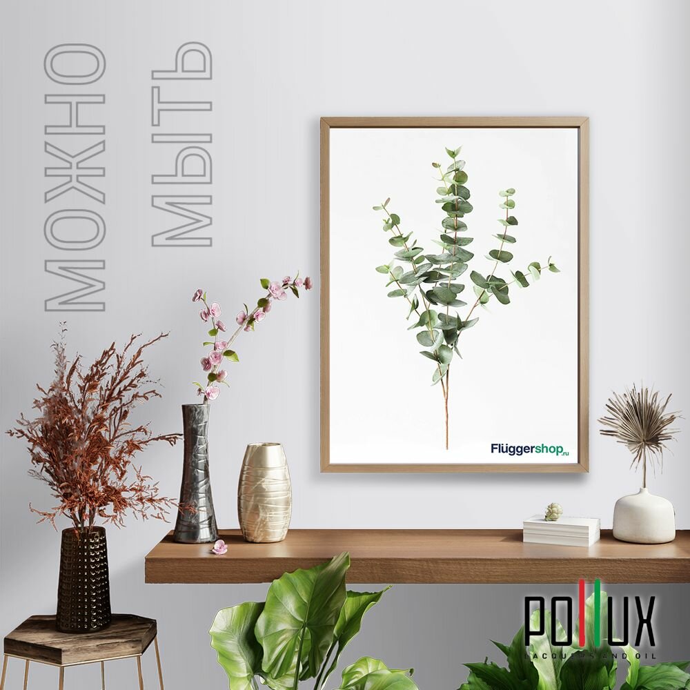 Краска моющаяся интерьерная для стен и потолков, Pollux INTERIOR без запаха, быстросохнущая, акриловая, матовое покрытие, цвет NCS S 6030-R70B, 1л.