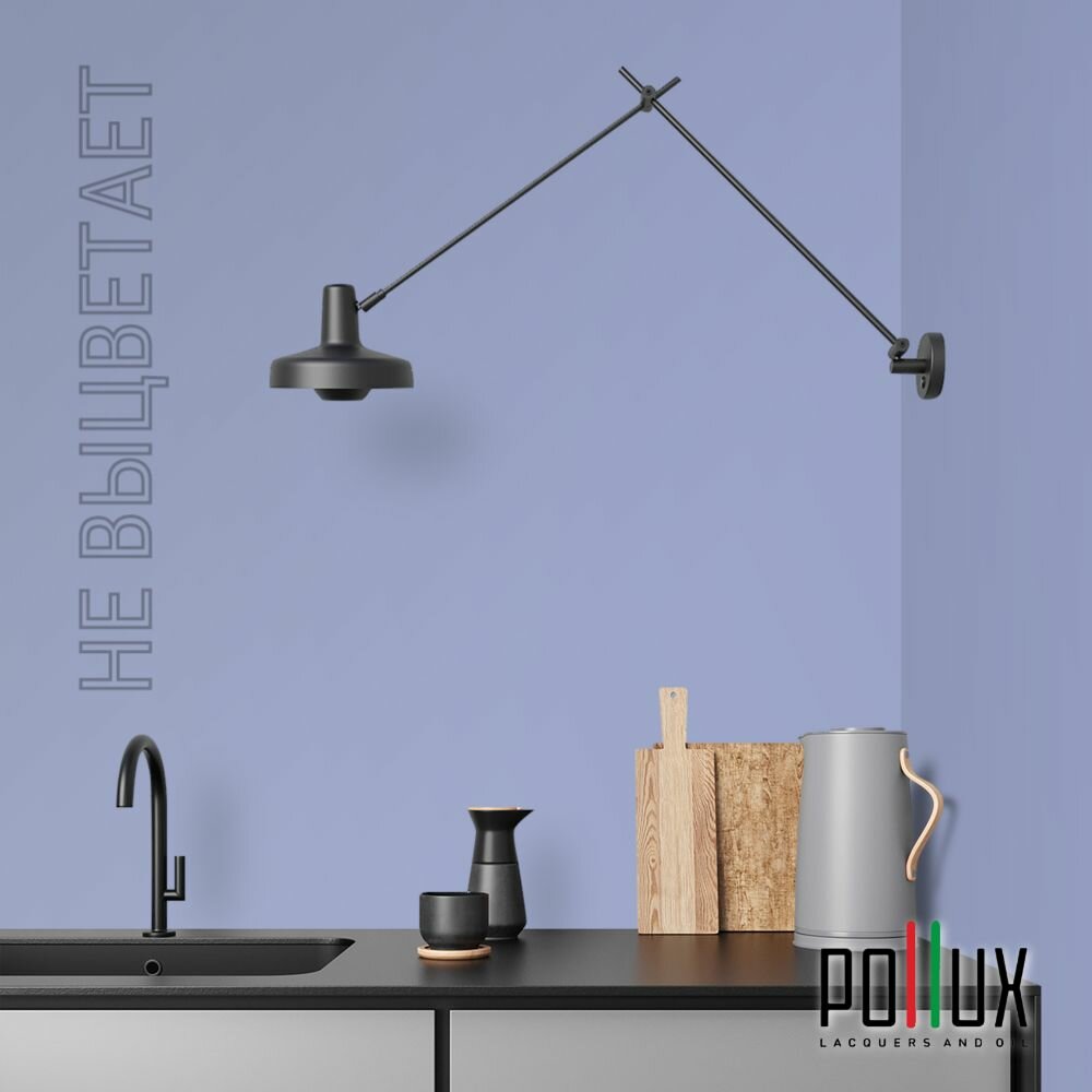 Краска моющаяся интерьерная для стен и потолков, Pollux INTERIOR без запаха, быстросохнущая, акриловая, матовое покрытие, цвет NCS S 5020-R70B, 1л.