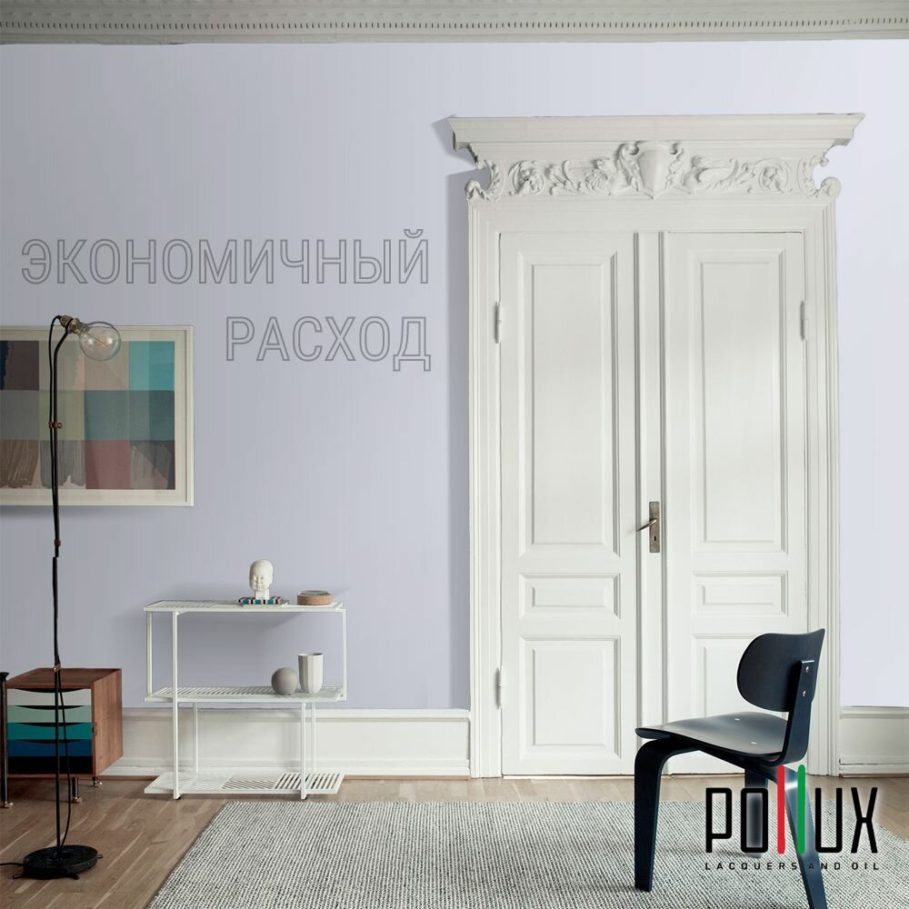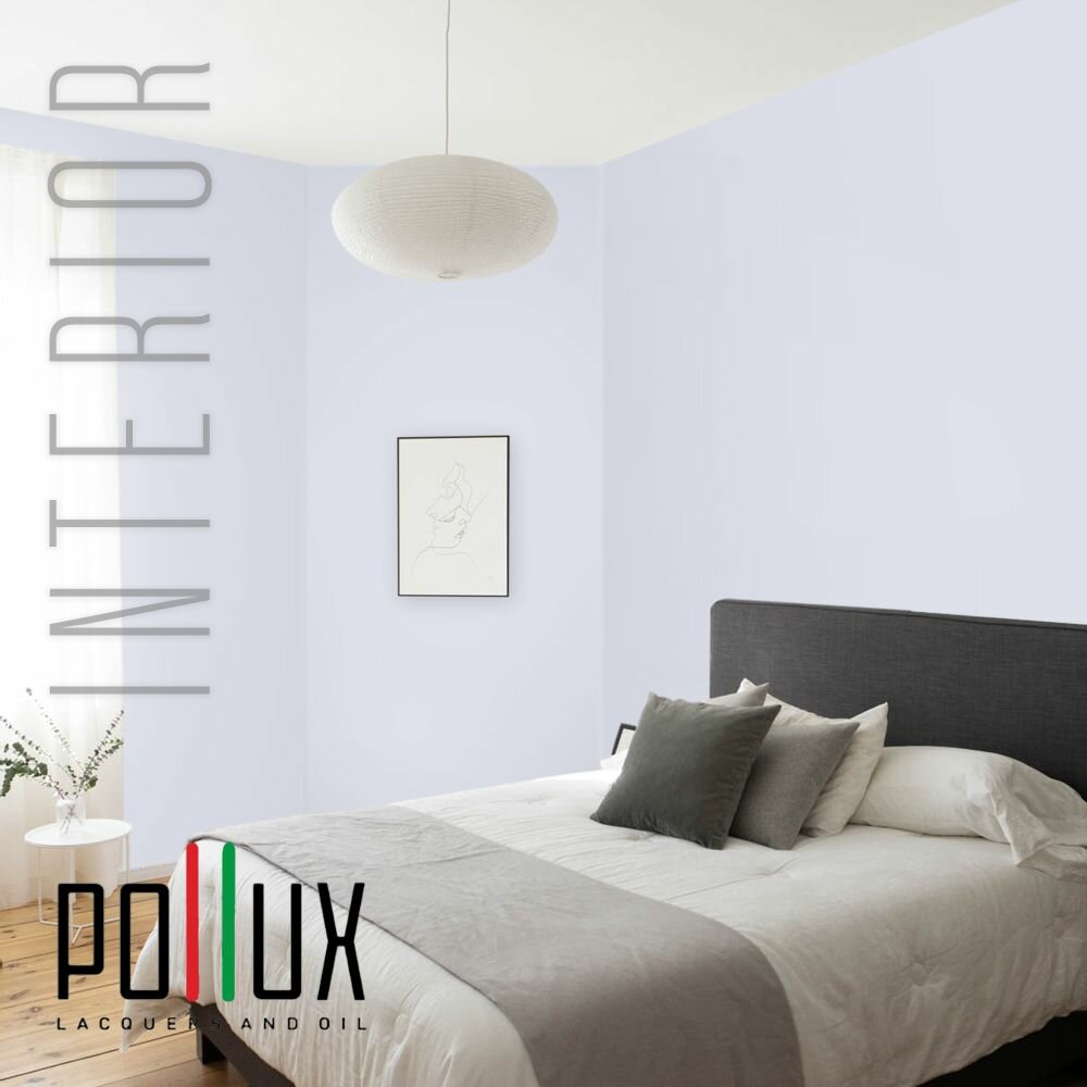 Краска моющаяся интерьерная для стен и потолков, Pollux INTERIOR без запаха, быстросохнущая, акриловая, матовое покрытие, цвет NCS S 2030-R70B, 1л.