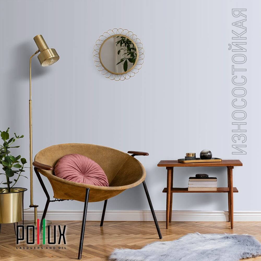 Краска моющаяся интерьерная для стен и потолков, Pollux INTERIOR без запаха, быстросохнущая, акриловая, матовое покрытие, цвет NCS S 3030-R70B, 1л.
