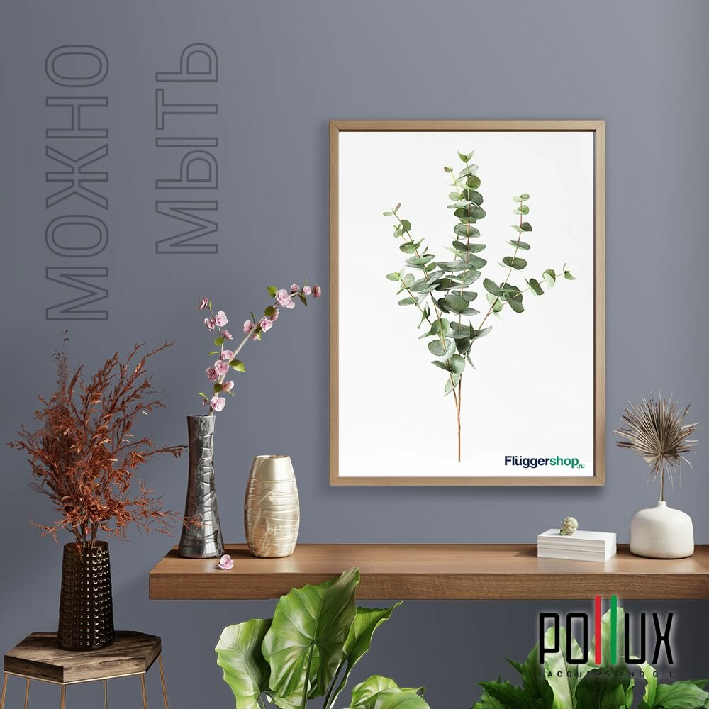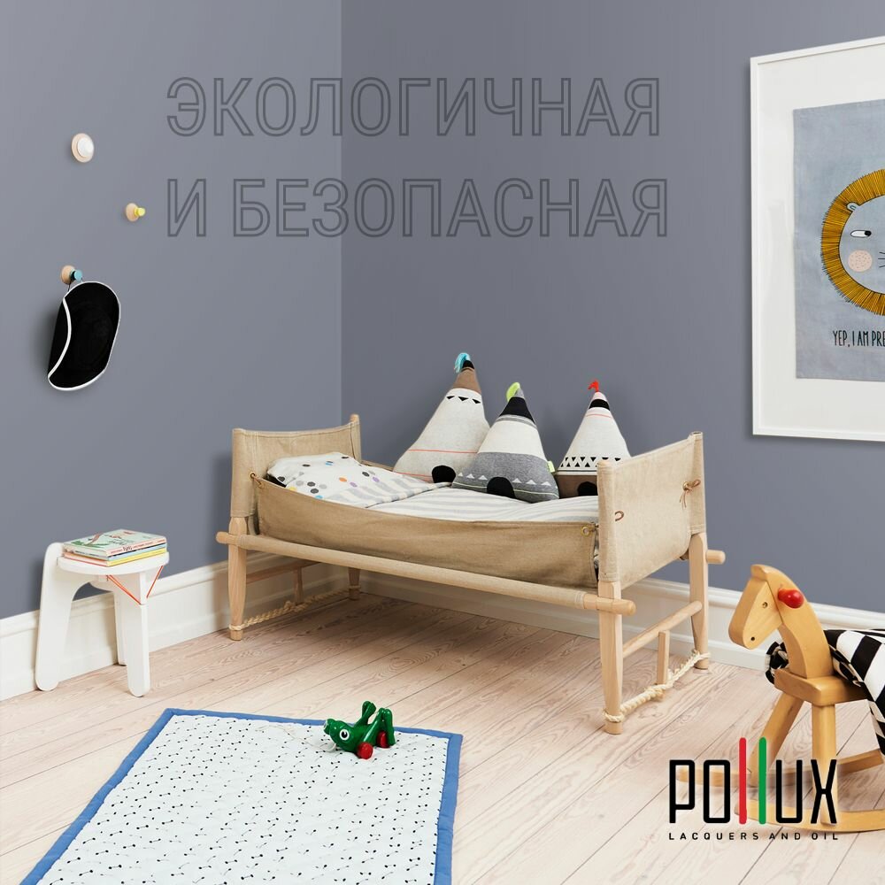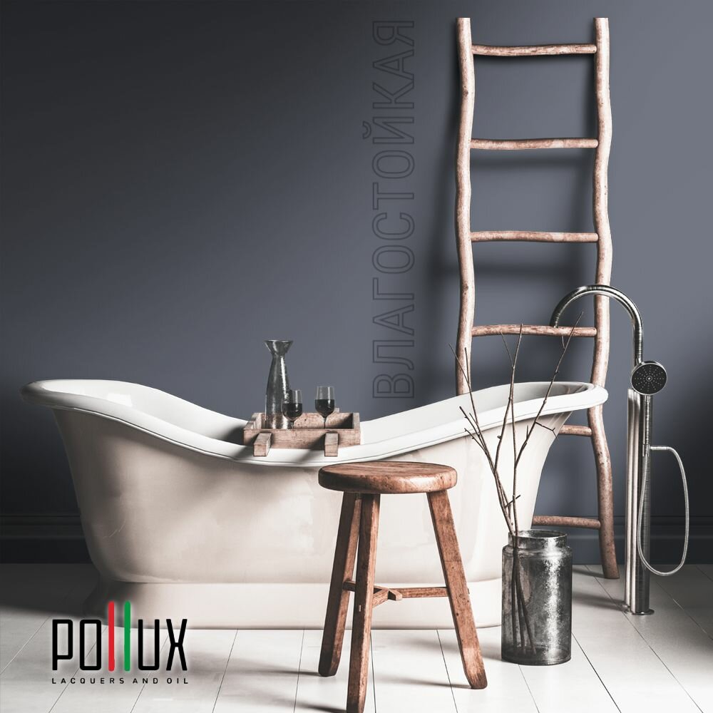 Краска моющаяся интерьерная для стен и потолков, Pollux INTERIOR без запаха, быстросохнущая, акриловая, матовое покрытие, цвет NCS S 8010-R70B, 1л.
