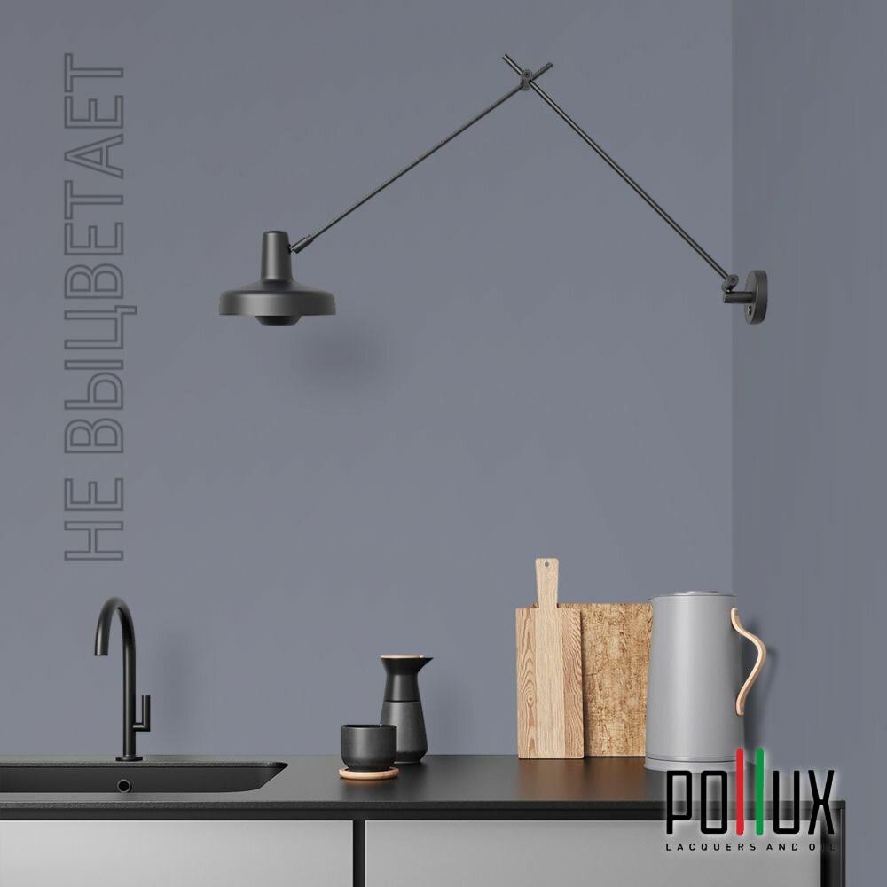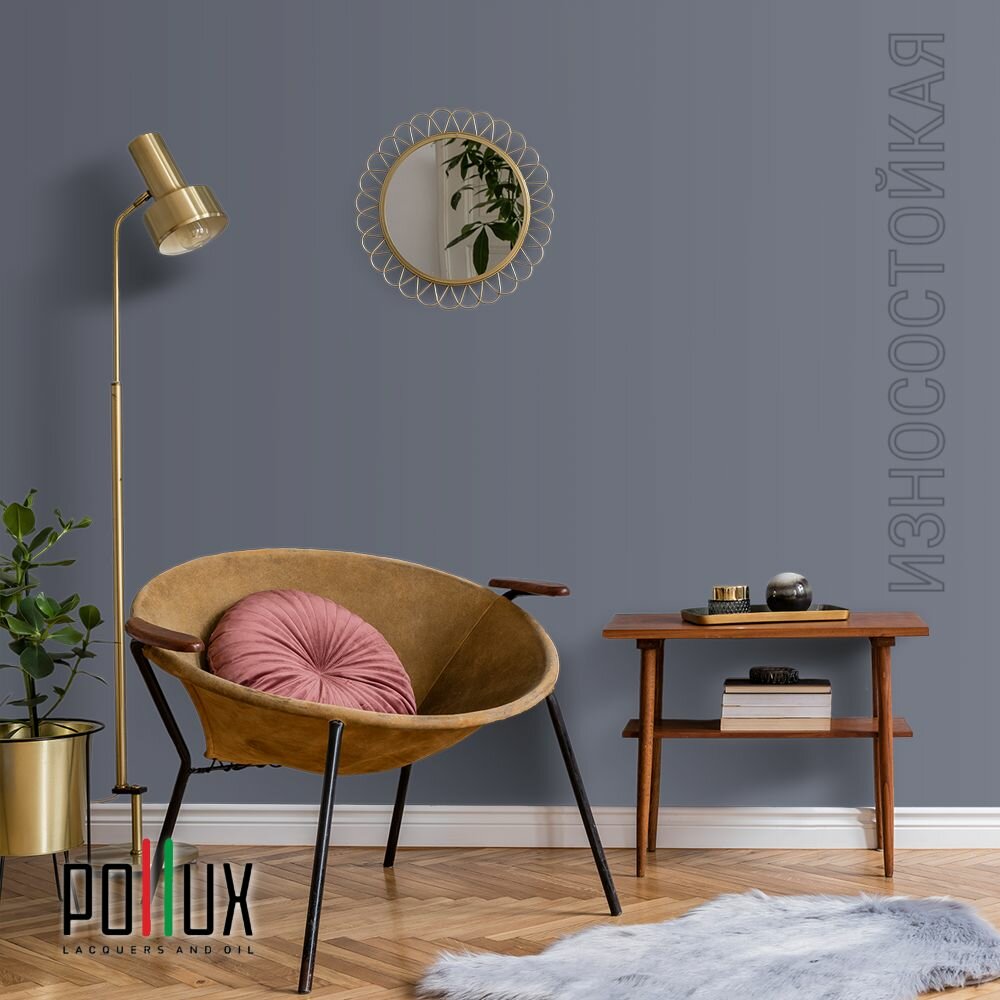 Краска моющаяся интерьерная для стен и потолков, Pollux INTERIOR без запаха, быстросохнущая, акриловая, матовое покрытие, цвет NCS S 7020-R70B, 1л.