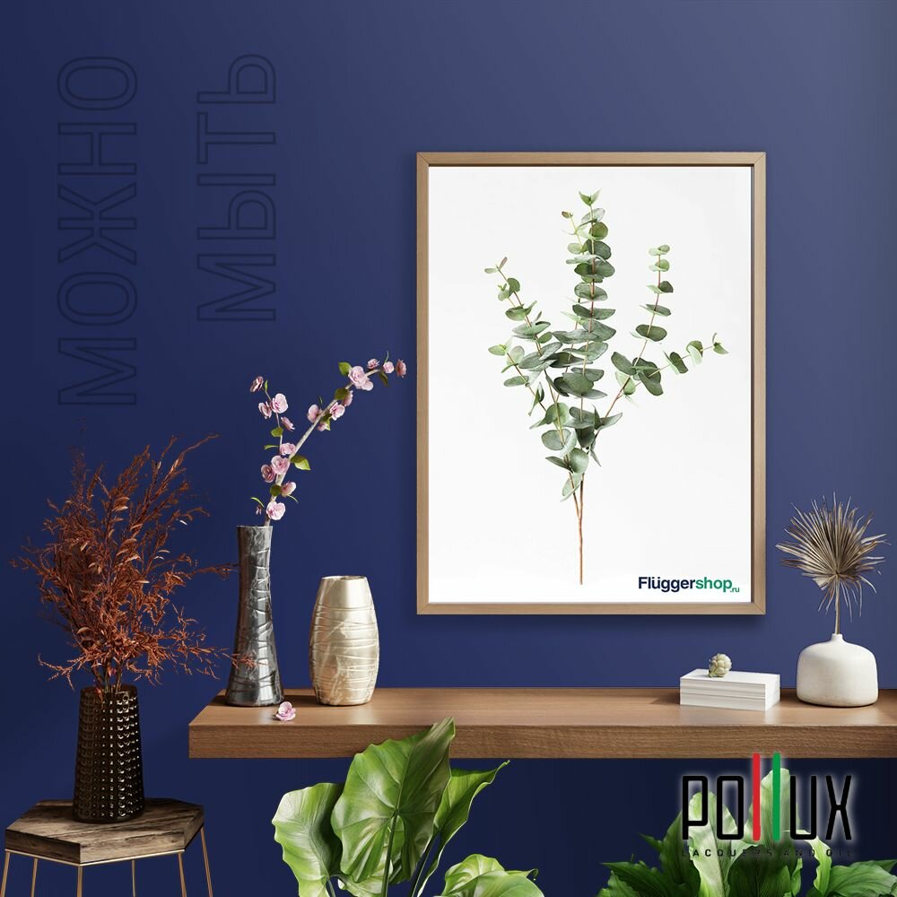 Краска моющаяся интерьерная для стен и потолков, Pollux INTERIOR без запаха, быстросохнущая, акриловая, матовое покрытие, цвет NCS S 8010-R70B, 1л.