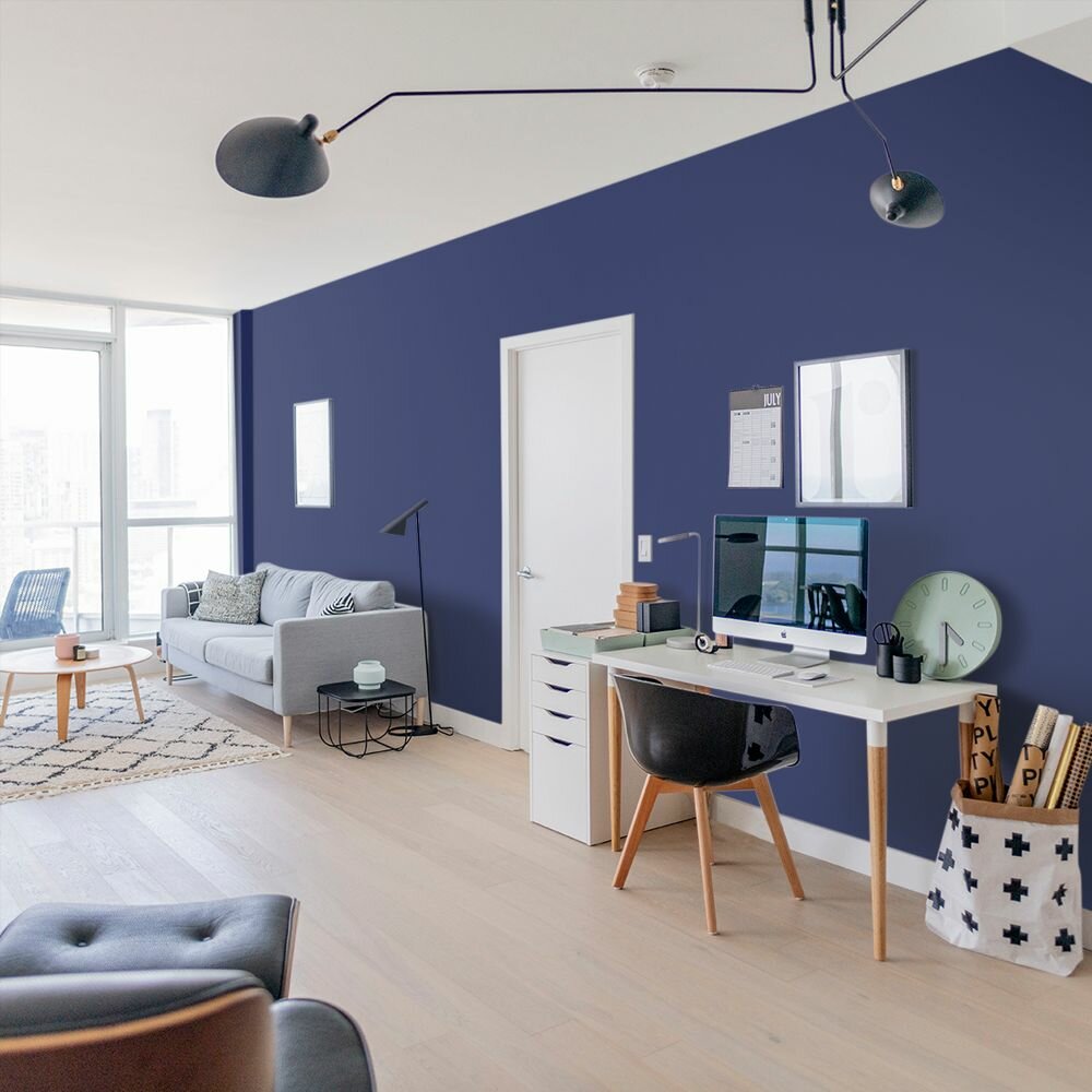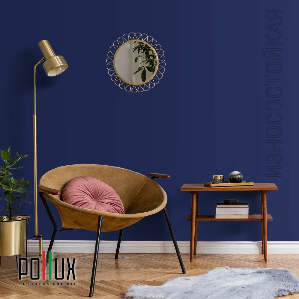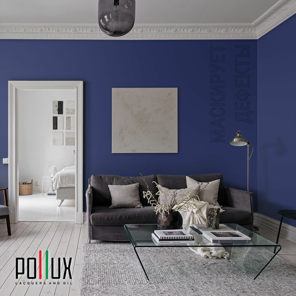 Краска моющаяся интерьерная для стен и потолков, Pollux INTERIOR без запаха, быстросохнущая, акриловая, матовое покрытие, цвет NCS S 3050-R70B, 1л.