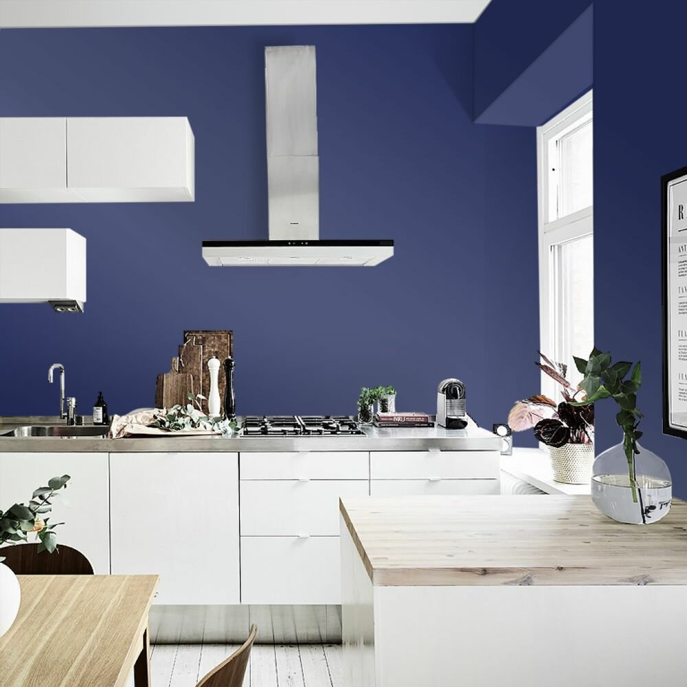 Краска моющаяся интерьерная для стен и потолков, Pollux INTERIOR без запаха, быстросохнущая, акриловая, матовое покрытие, цвет NCS S 4050-R70B, 1л.