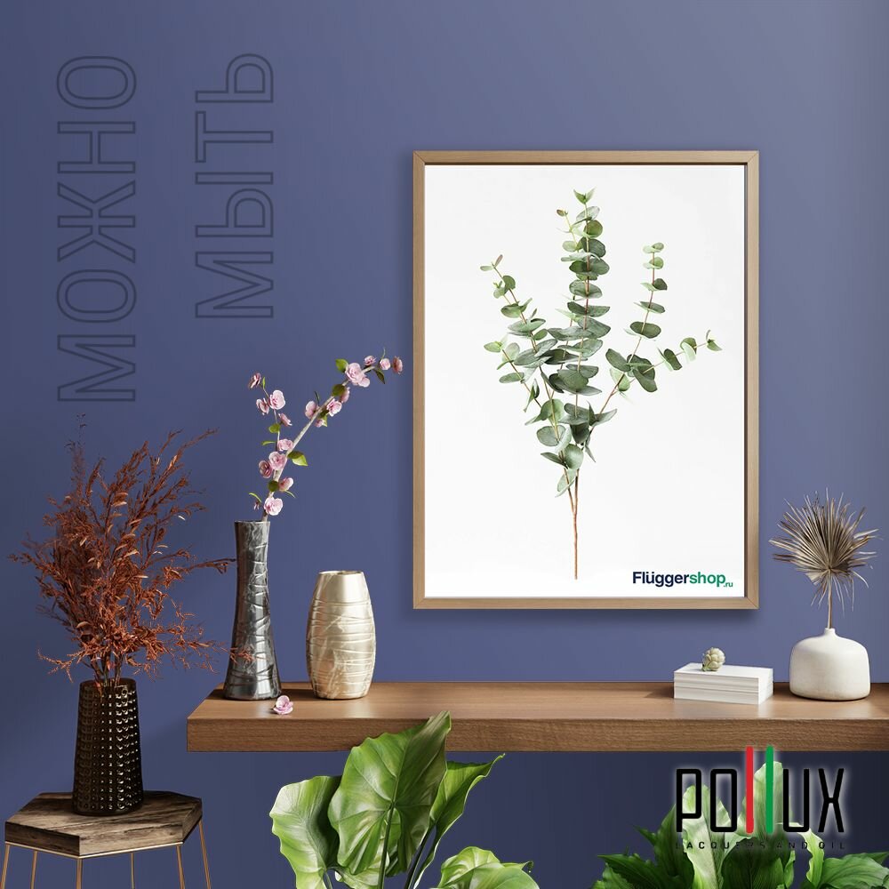 Краска моющаяся интерьерная для стен и потолков, Pollux INTERIOR без запаха, быстросохнущая, акриловая, матовое покрытие, цвет NCS S 3050-R70B, 1л.