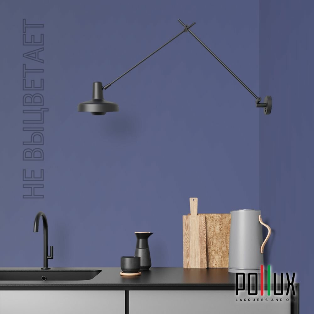 Краска моющаяся интерьерная для стен и потолков, Pollux INTERIOR без запаха, быстросохнущая, акриловая, матовое покрытие, цвет NCS S 8010-R70B, 1л.