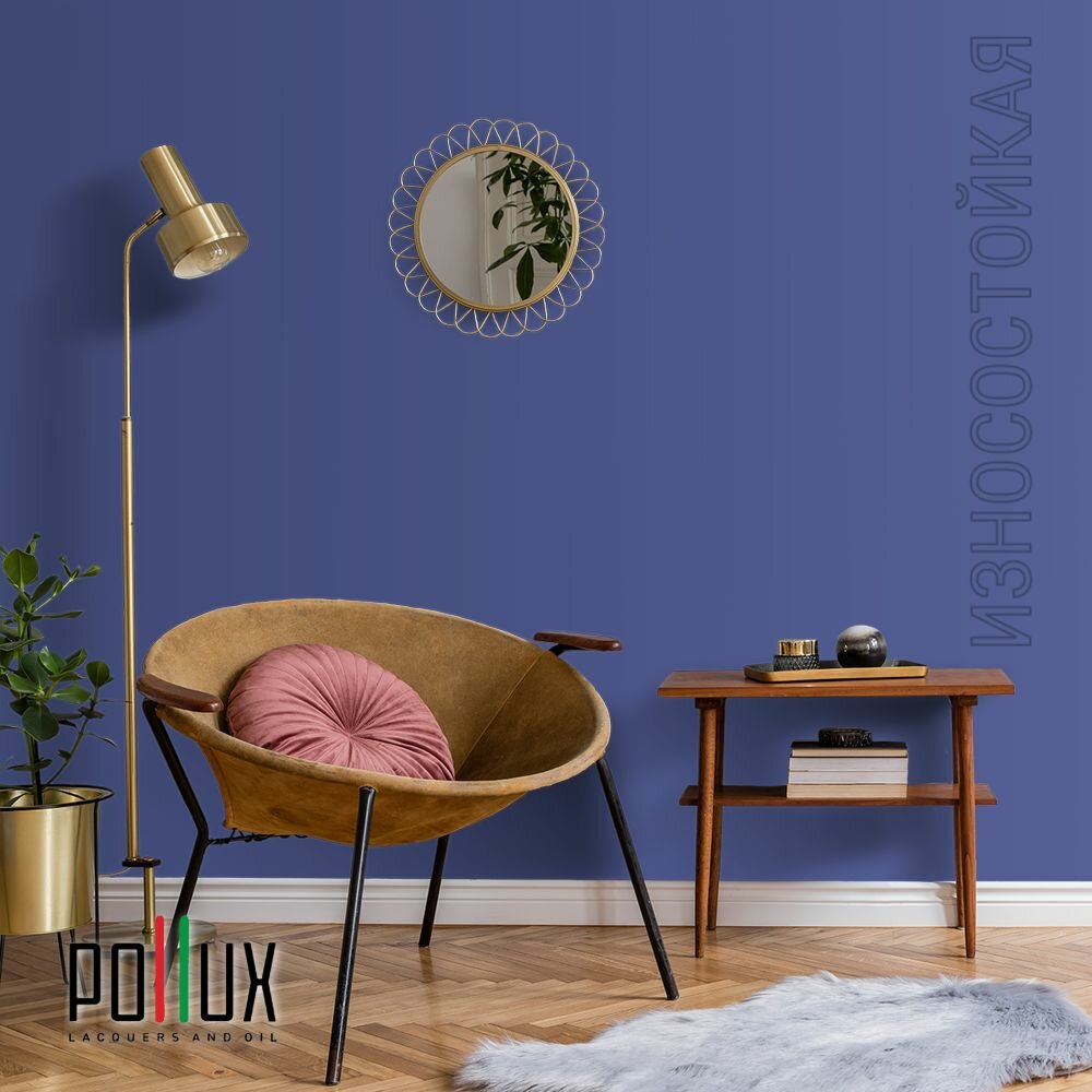 Краска моющаяся интерьерная для стен и потолков, Pollux INTERIOR без запаха, быстросохнущая, акриловая, матовое покрытие, цвет NCS S 3050-R70B, 1л.