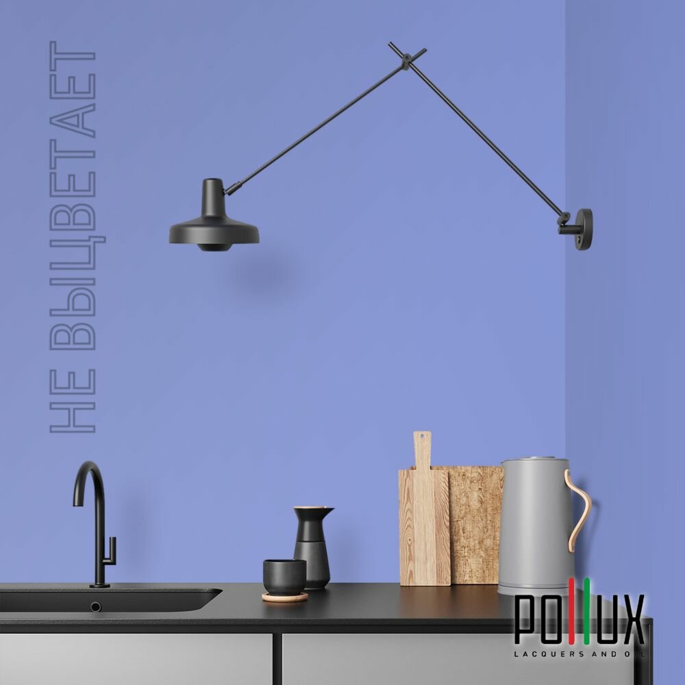 Краска моющаяся интерьерная для стен и потолков, Pollux INTERIOR без запаха, быстросохнущая, акриловая, матовое покрытие, цвет NCS S 8010-R70B, 1л.