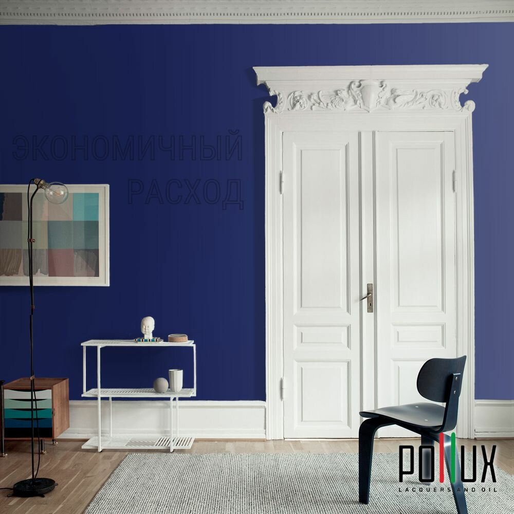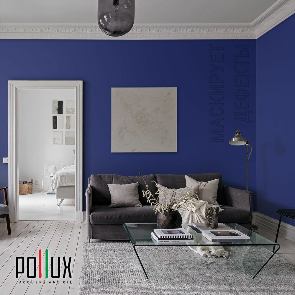 Краска моющаяся интерьерная для стен и потолков, Pollux INTERIOR без запаха, быстросохнущая, акриловая, матовое покрытие, цвет NCS S 3050-R70B, 1л.