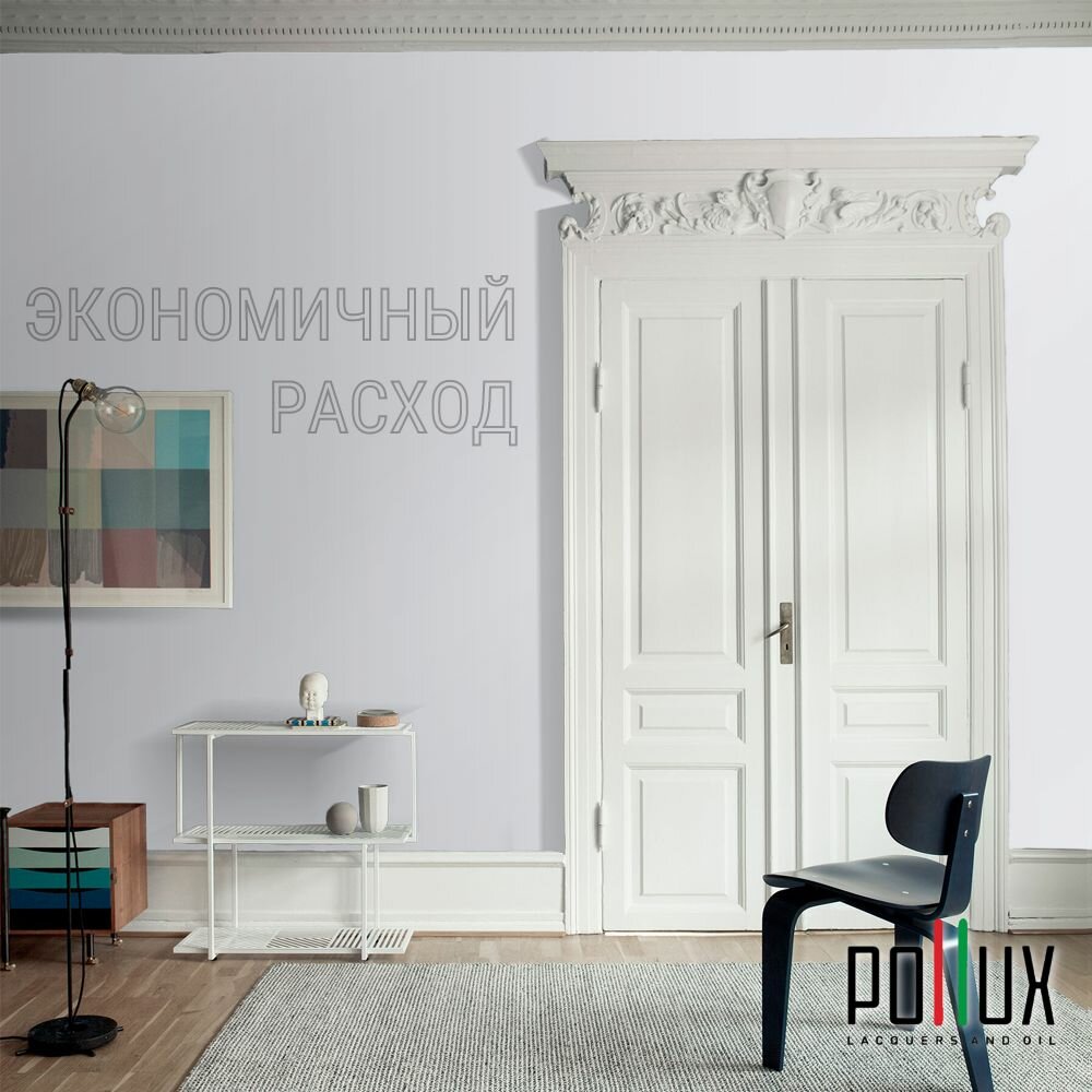 Краска моющаяся интерьерная для стен и потолков, Pollux INTERIOR без запаха, быстросохнущая, акриловая, матовое покрытие, цвет NCS S 1040-R70B, 1л.