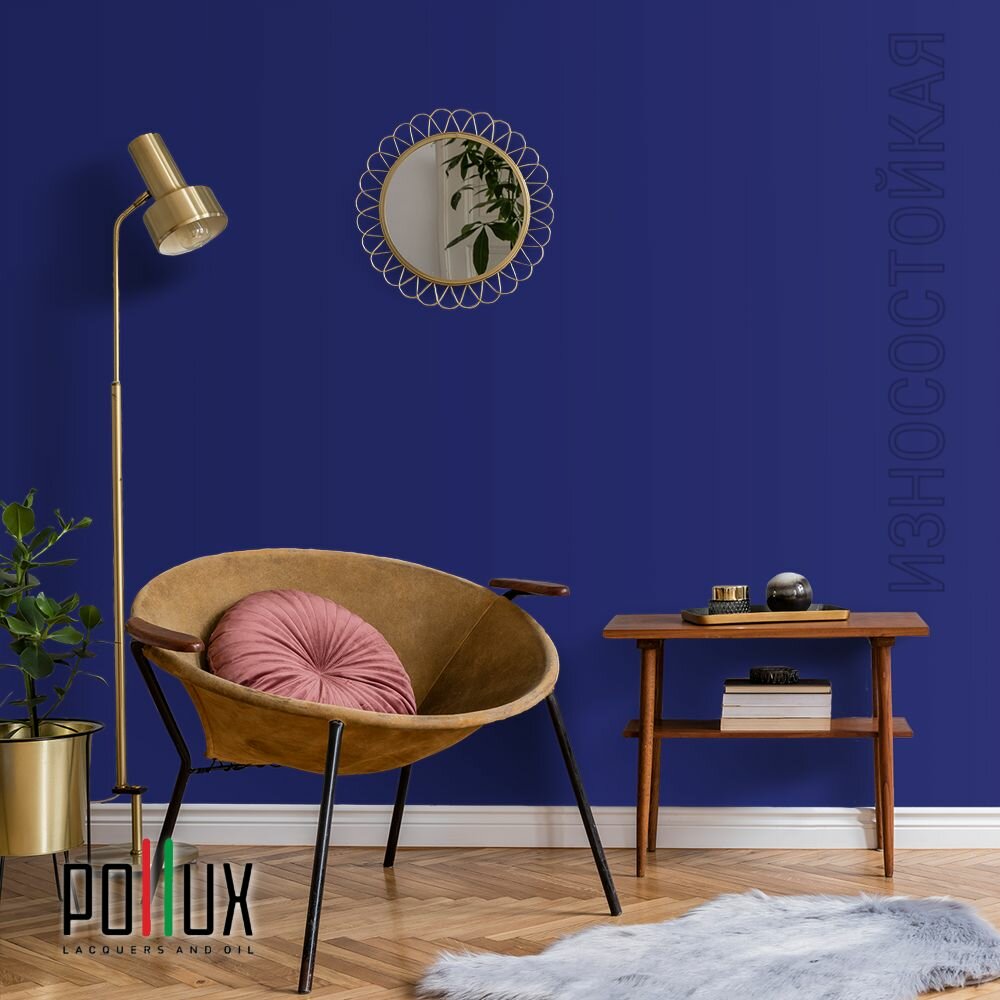Краска моющаяся интерьерная для стен и потолков, Pollux INTERIOR без запаха, быстросохнущая, акриловая, матовое покрытие, цвет NCS S 3050-R70B, 1л.