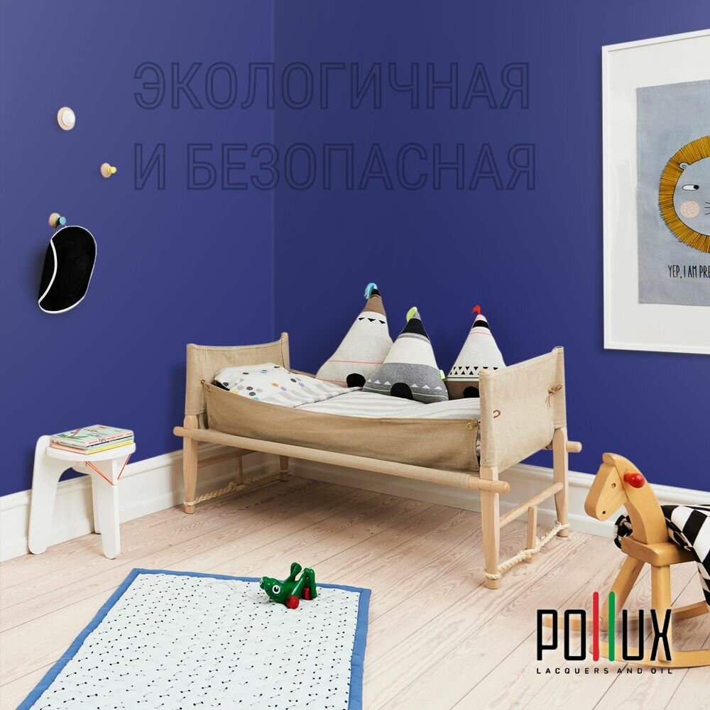 Краска моющаяся интерьерная для стен и потолков, Pollux INTERIOR без запаха, быстросохнущая, акриловая, матовое покрытие, цвет NCS S 8010-R70B, 1л.