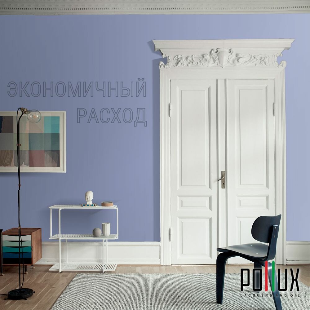 Краска моющаяся интерьерная для стен и потолков, Pollux INTERIOR без запаха, быстросохнущая, акриловая, матовое покрытие, цвет NCS S 2050-R70B, 1л.