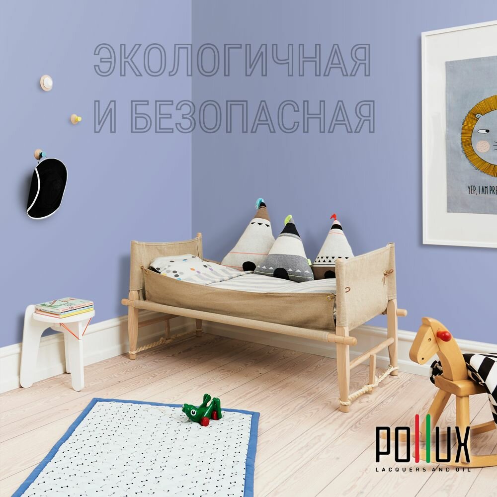 Краска моющаяся интерьерная для стен и потолков, Pollux INTERIOR без запаха, быстросохнущая, акриловая, матовое покрытие, цвет NCS S 2030-R70B, 1л.