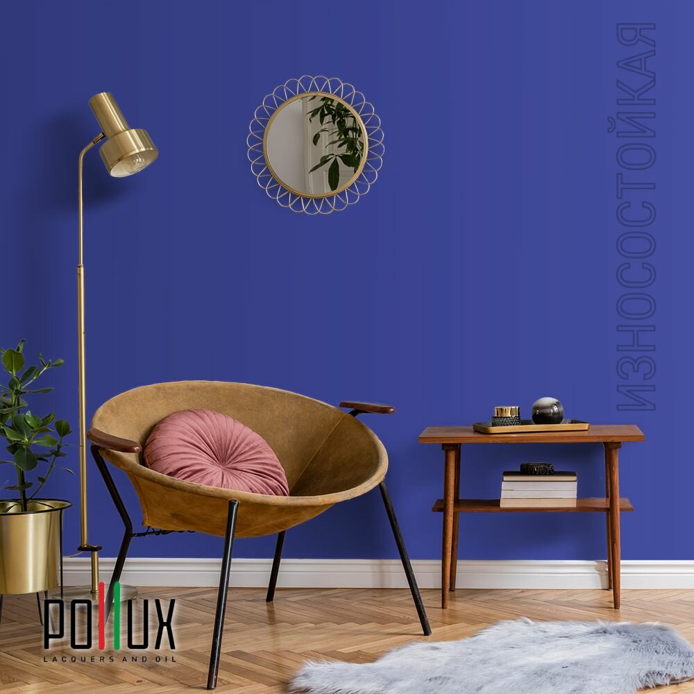 Краска моющаяся интерьерная для стен и потолков, Pollux INTERIOR без запаха, быстросохнущая, акриловая, матовое покрытие, цвет NCS S 3050-R70B, 1л.