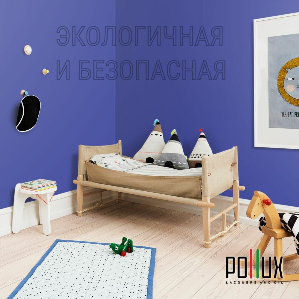 Краска моющаяся интерьерная для стен и потолков, Pollux INTERIOR без запаха, быстросохнущая, акриловая, матовое покрытие, цвет NCS S 8010-R70B, 1л.