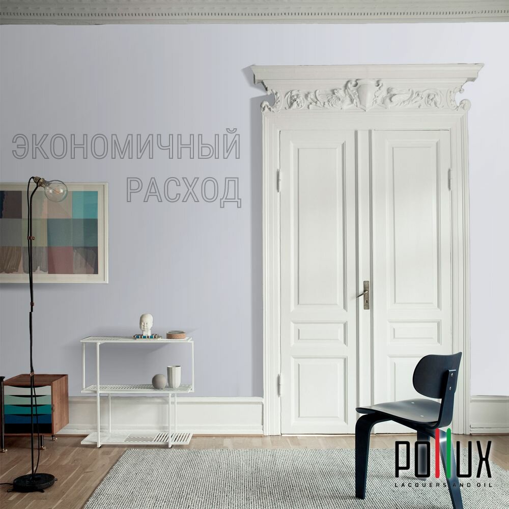 Краска моющаяся интерьерная для стен и потолков, Pollux INTERIOR без запаха, быстросохнущая, акриловая, матовое покрытие, цвет NCS S 8010-R70B, 1л.