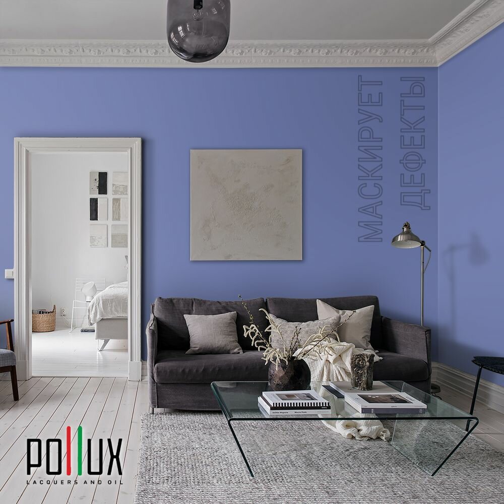 Краска моющаяся интерьерная для стен и потолков, Pollux INTERIOR без запаха, быстросохнущая, акриловая, матовое покрытие, цвет NCS S 2030-R70B, 1л.