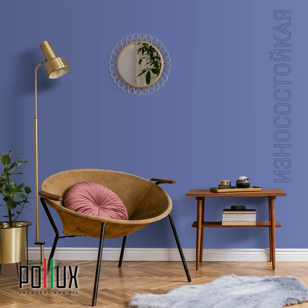 Краска моющаяся интерьерная для стен и потолков, Pollux INTERIOR без запаха, быстросохнущая, акриловая, матовое покрытие, цвет NCS S 3050-R70B, 1л.