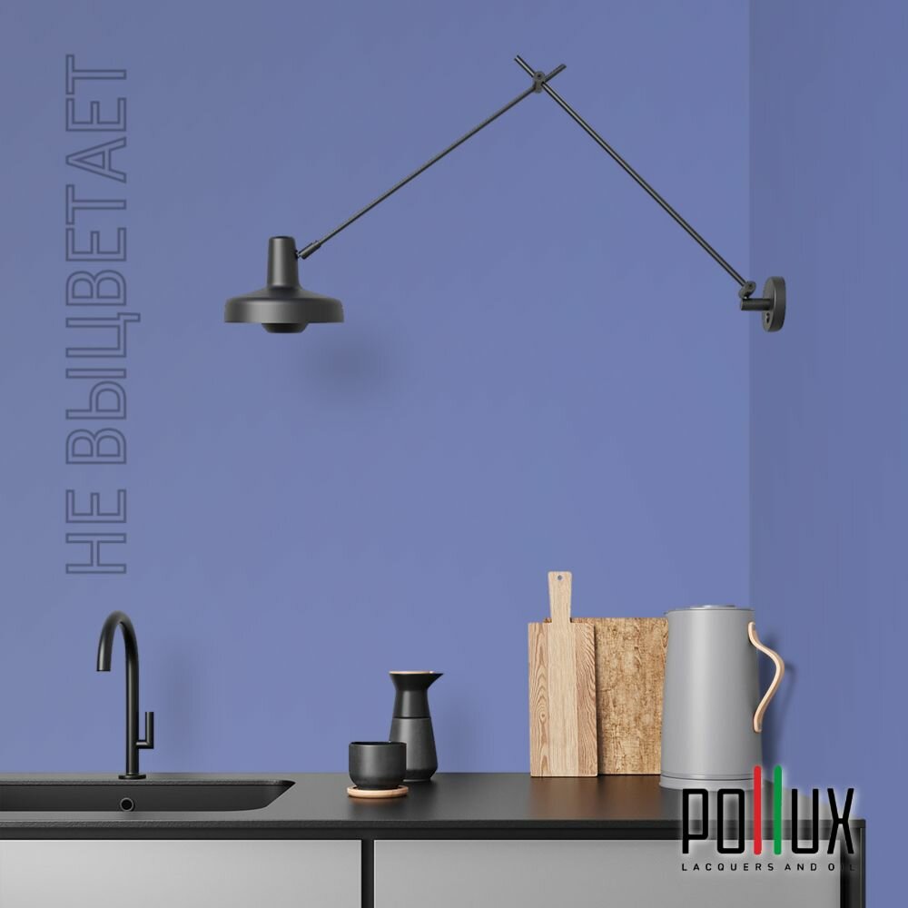 Краска моющаяся интерьерная для стен и потолков, Pollux INTERIOR без запаха, быстросохнущая, акриловая, матовое покрытие, цвет NCS S 5020-R70B, 1л.