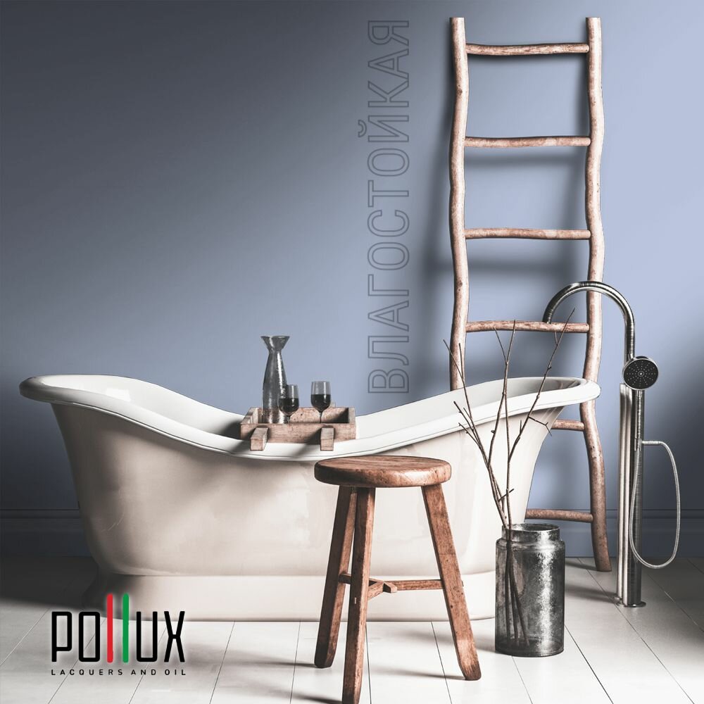 Краска моющаяся интерьерная для стен и потолков, Pollux INTERIOR без запаха, быстросохнущая, акриловая, матовое покрытие, цвет NCS S 8010-R70B, 1л.