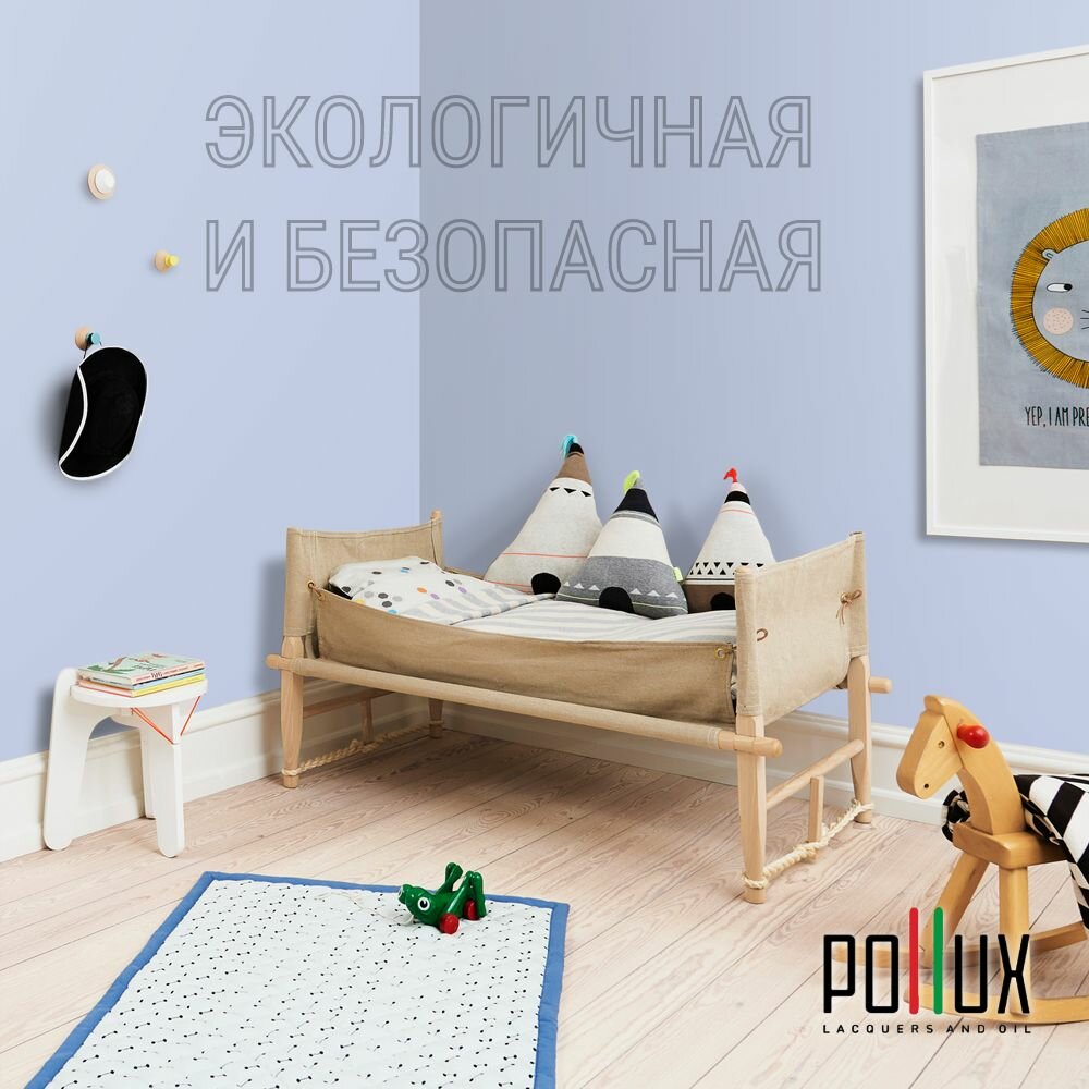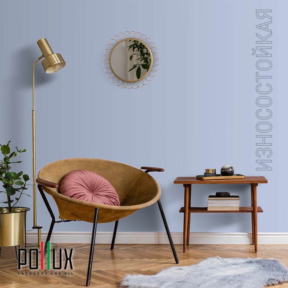 Краска моющаяся интерьерная для стен и потолков, Pollux INTERIOR без запаха, быстросохнущая, акриловая, матовое покрытие, цвет NCS S 5020-R70B, 1л.