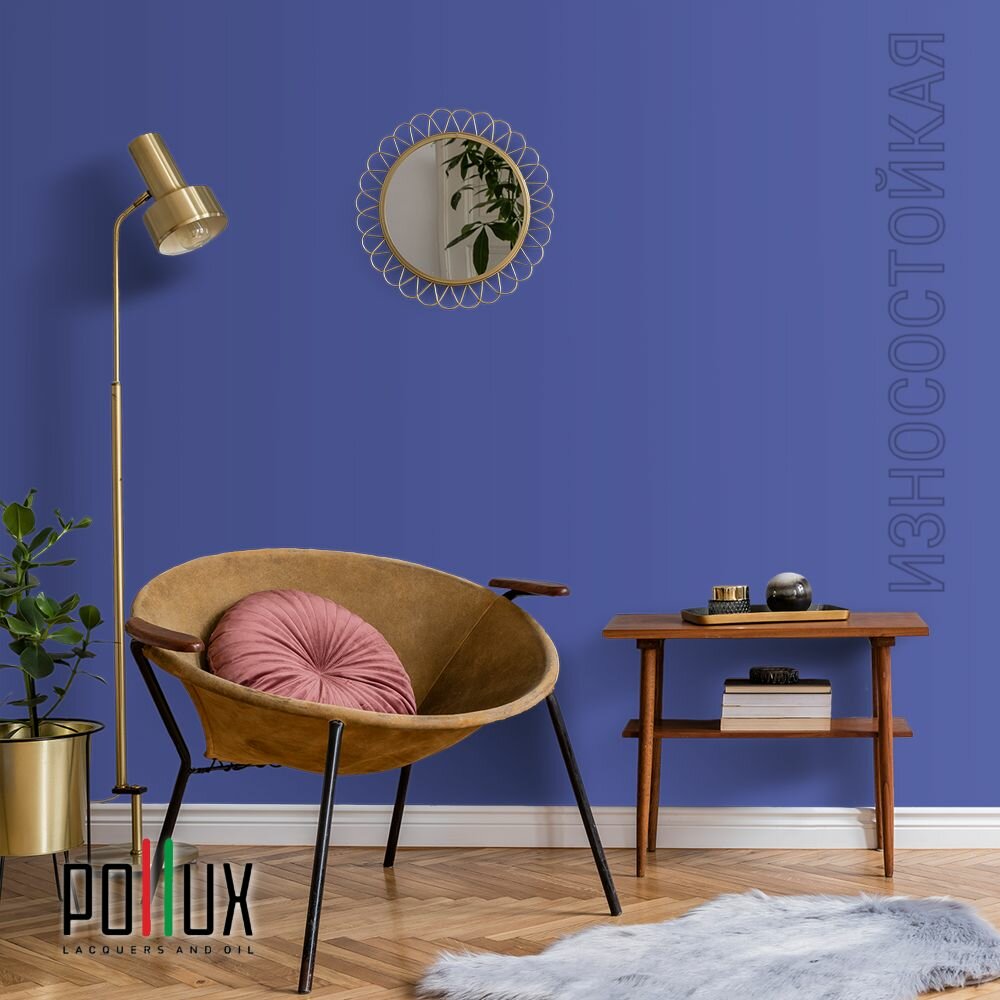 Краска моющаяся интерьерная для стен и потолков, Pollux INTERIOR без запаха, быстросохнущая, акриловая, матовое покрытие, цвет NCS S 3050-R70B, 1л.
