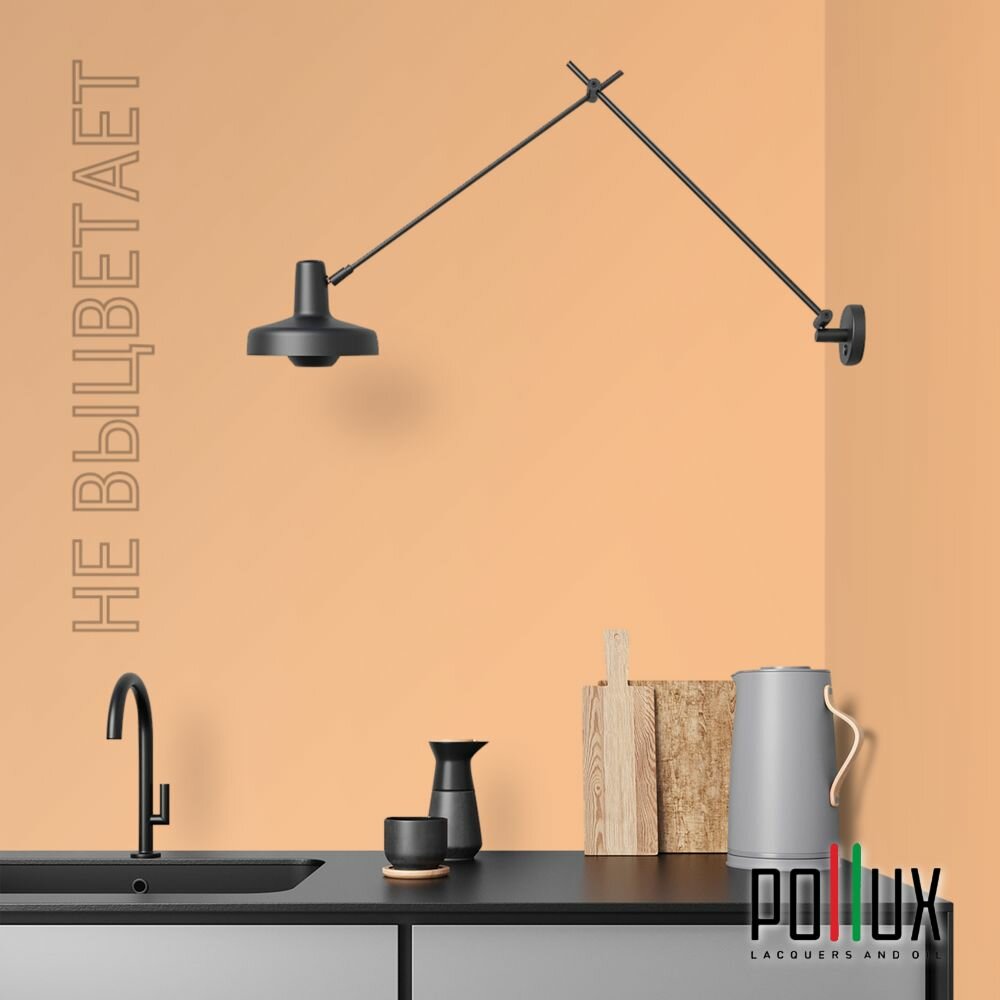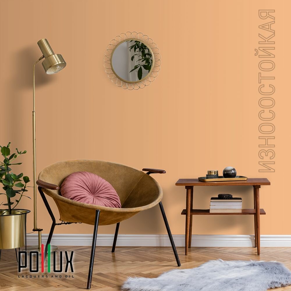 Краска моющаяся интерьерная для стен и потолков, Pollux INTERIOR без запаха, быстросохнущая, акриловая, матовое покрытие, цвет NCS S 3030-Y40R, 1л.